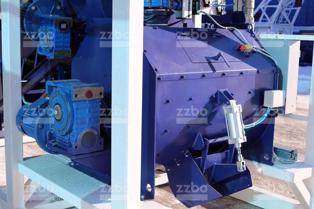 Объем 500 литров. Бетоносмеситель принудительного типа, одновальный. С горизонтальным расположением вала. Имеет 6 лопастей для перемешивания. Мощность привода смесителя 11 кВт. Вращение вала с частотой 30 оборотов в минуту.