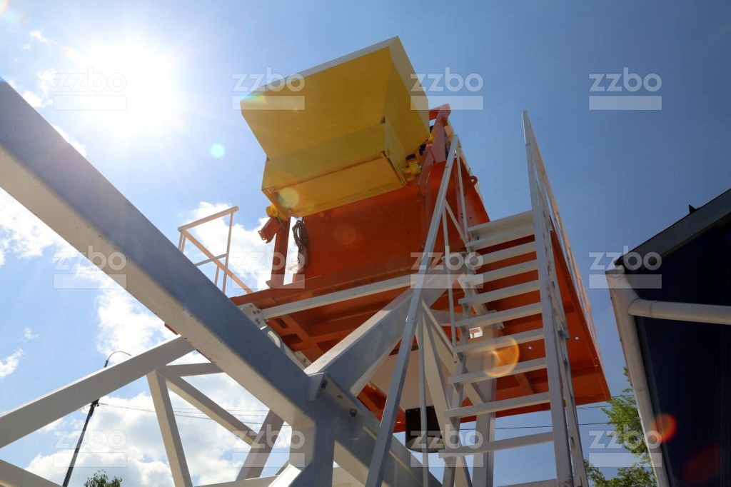 При наборе необходимой дозы, включается конвейер-дозатор и от дозированные компоненты подаются в скип (ковш) бетоносмесителя. Скип поднимается наверх и подает компоненты в смесительную камеру бетоносмесителя.