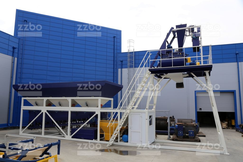 Двухвальный бетоносмеситель БП-2Г-1200с установлен на эстакаде с высотой выгрузки готовой смеси 4 метра.Бетоносмеситель оснащен скипом с донным затвором для подъема и загрузки смеси.