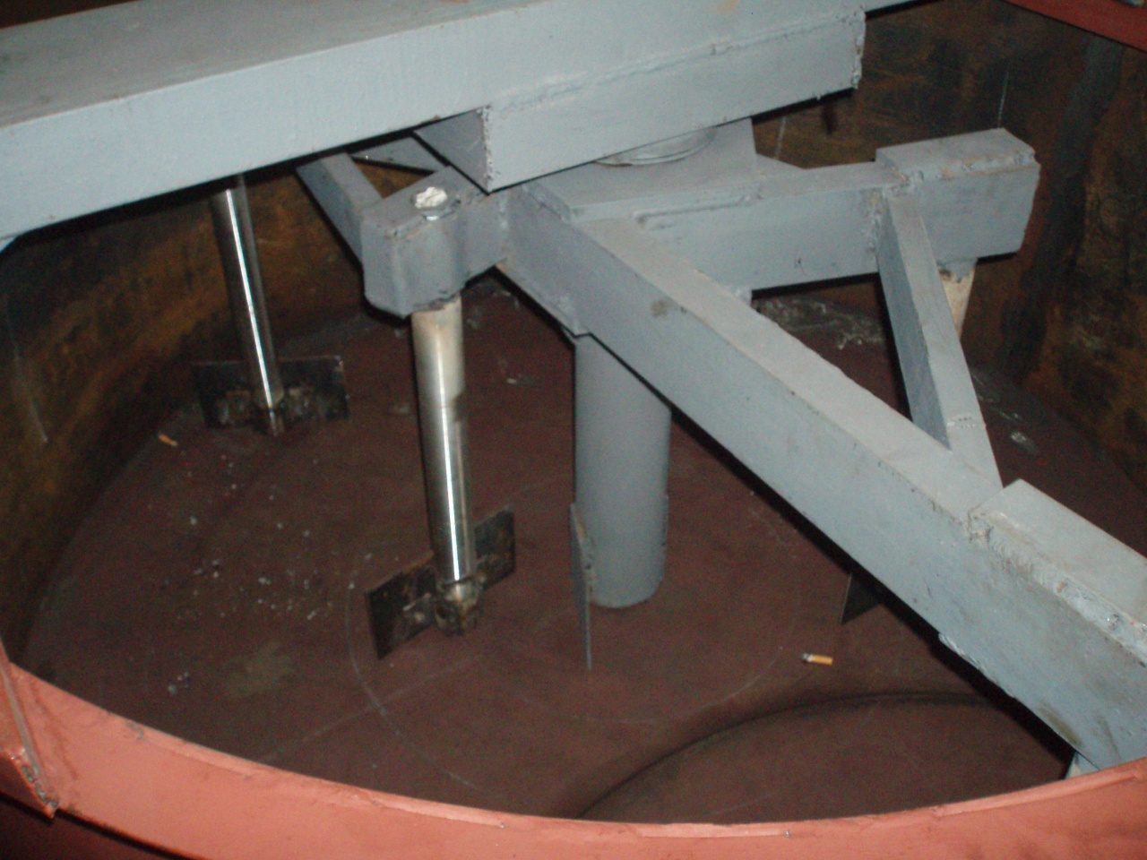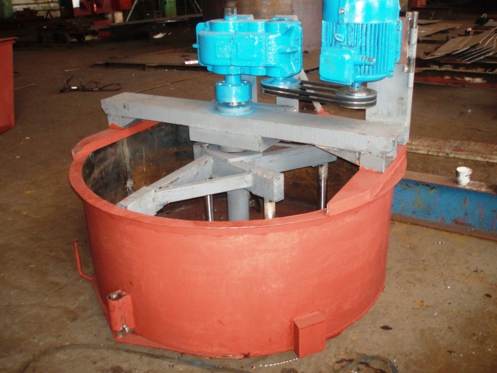 Емкость для смешивания : диаметр-1500мм; высота-600мм; толщина стенки-6мм; толщина днища-10мм; обечайка-труба профильная.