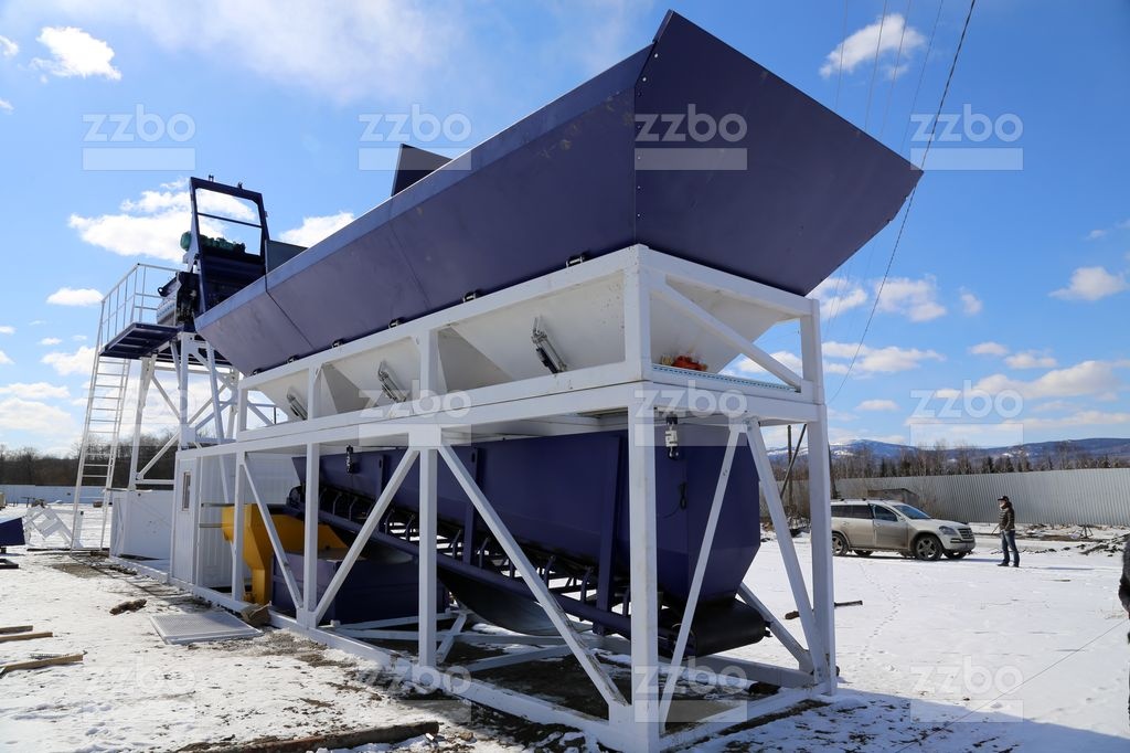 Для хранения и дозирования инертных: дозирующий комплекс ДКМ-36. Инертные хранятся в бункерах, количество бункеров 3 по 12 куб. метра, общий объем бункеров 36 куб. метров. Под бункерами установлен ленточный конвейер-дозатор, на котором происходит дозирование компонентов, компоненты подаются из бункеров посредством открытия пневмозатворов «Camozzi»(Италия). При наборе необходимой дозы инертных, включается конвейер и инертные подаются в скип, который поднимает компоненты в бетоносмеситель.