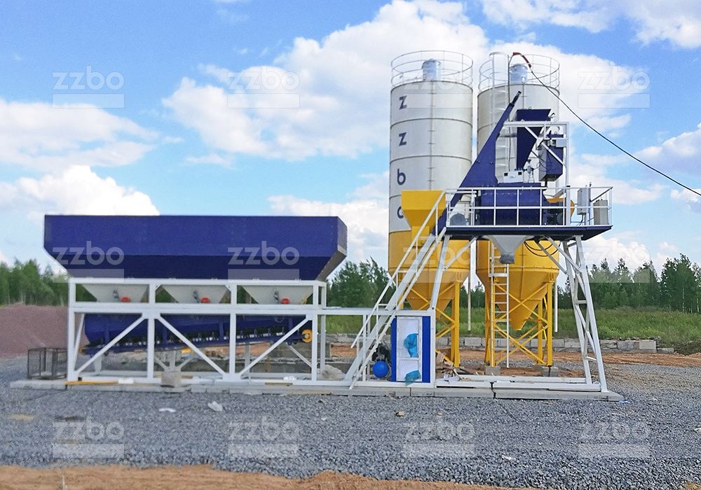 Двухвальный бетоносмеситель БП-2Г-2250с установлен на эстакаде с высотой выгрузки готовой смеси 4 метра. Бетоносмеситель оснащен скипом с донным затвором для подъема и загрузки смеси.