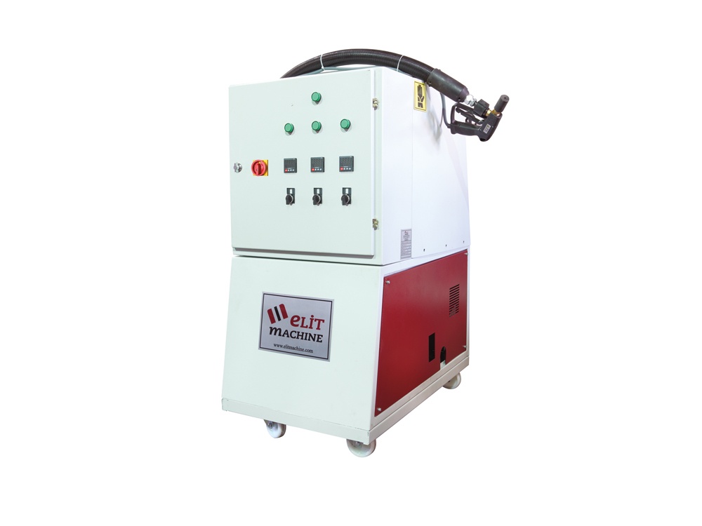 - Цифровой дисплей для индикации средней температуры герметика, измеряемый одновременно в трех разных точках бункера, содержащего материал;