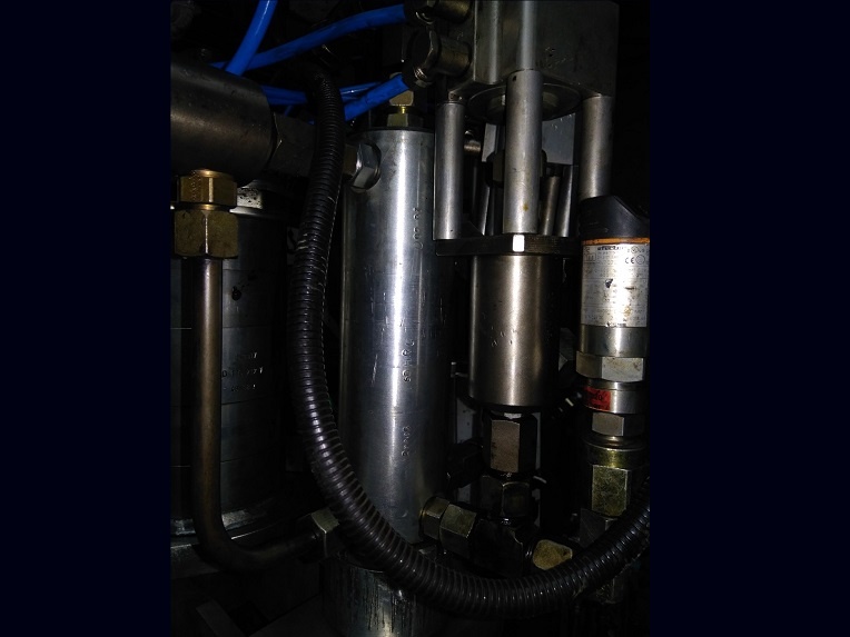 Экструдер полисульфида/силикона с гидравлическим приводом всех насосов и дозирующими насосами с пропорционально регулируемым выходом материала до 4 литров в минуту.