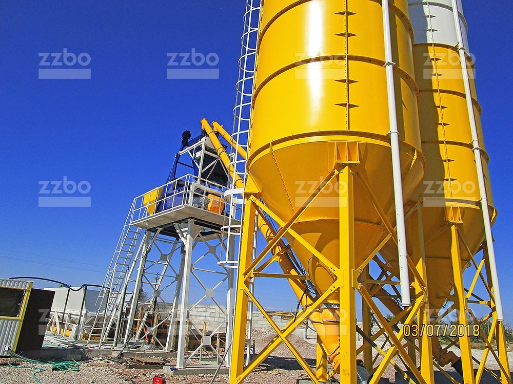 Цемент складируется в специальном складе — силосе цемента (не входит в базовую комплектацию). Силос для цемента необходимо подбирать из расчета двух суточного запаса по производительности. Для подачи цемента из силоса в дозатор цемента необходимо приобрести шнек нужной длины.