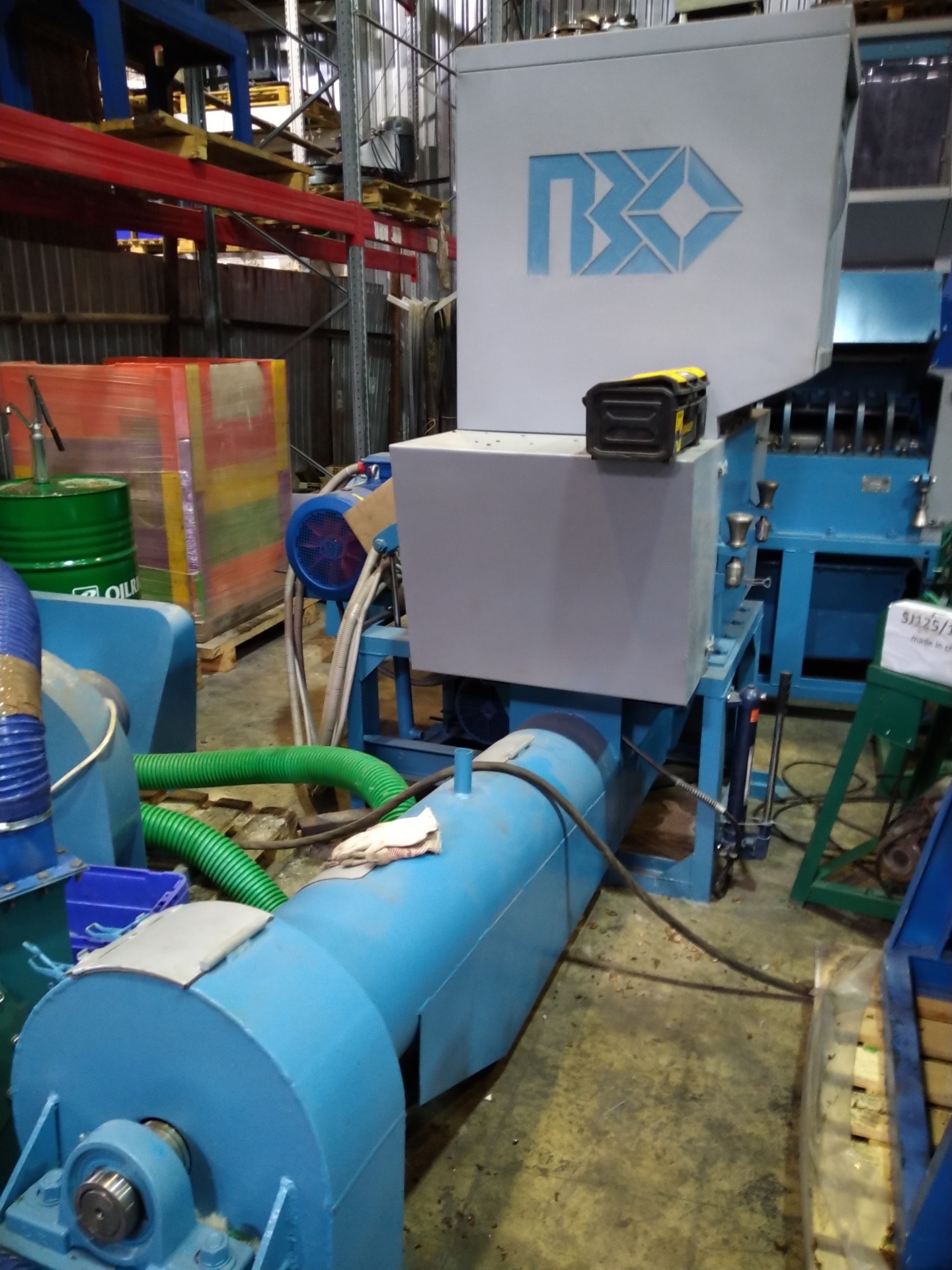Моющая дробилка предназначена для измельчения и предварительной отмывки ПЭТ-бутылки, ящиков, канистр, пленки, биг-бегов . Продуктом переработки является дробленка, которая после стадии отмывки может быть переработана в гранулу. Мощность основного двигателя 22 кВт, мощность шнековой выгрузки 7,5 кВт.