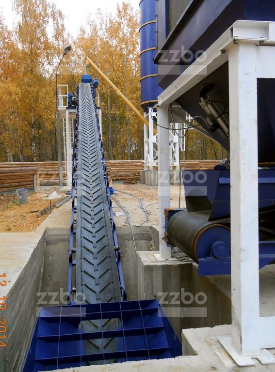 Двухвальный бетоносмеситель БП-2Г-375 установлен на эстакаде с высотой разгрузки готовой смеси 4 метра. Бетононный завод ЛЕНТА-18 оборудован ленточным конвейером с шевронной лентой, для подъема и загрузки компонентов смеси внутрь бетоносмесителя.