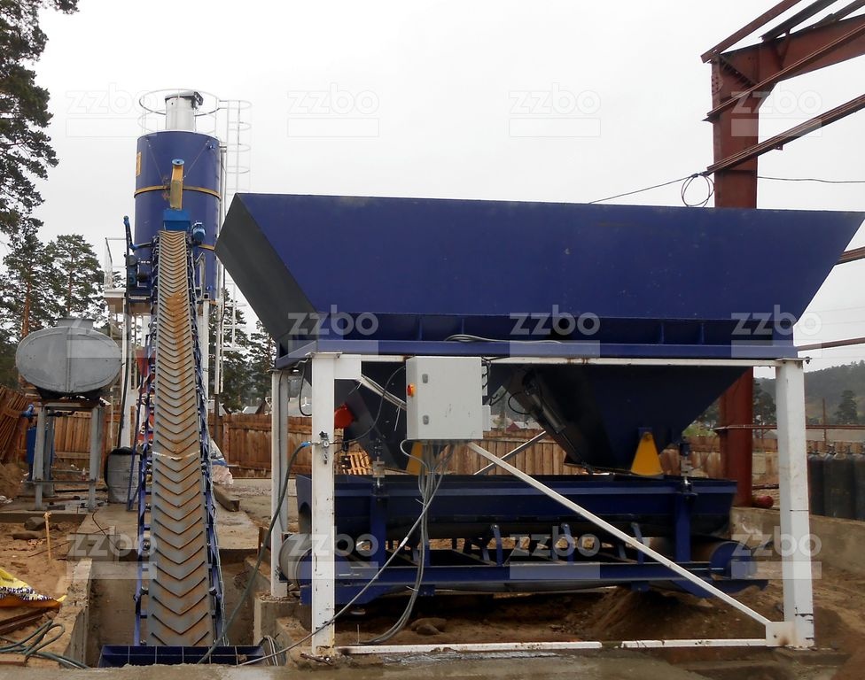 При наборе необходимой дозы, включается конвейер-дозатор и от дозированные компоненты подаются в приемный бункер ленточноно конвейера и по конвейеру перемещаются в бетоносмеситель.