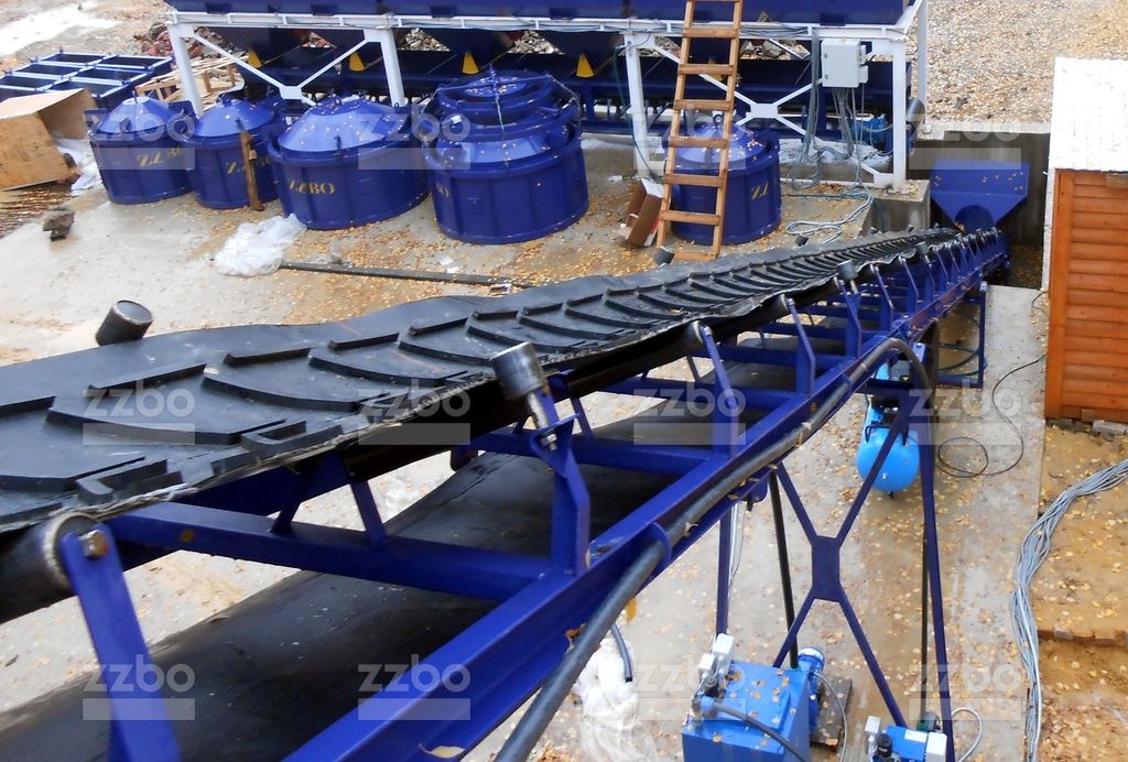 При наборе необходимой дозы, включается конвейер-дозатор и от дозированные компоненты подаются в приемный бункер ленточноно конвейера и по конвейеру перемещаются в бетоносмеситель.
