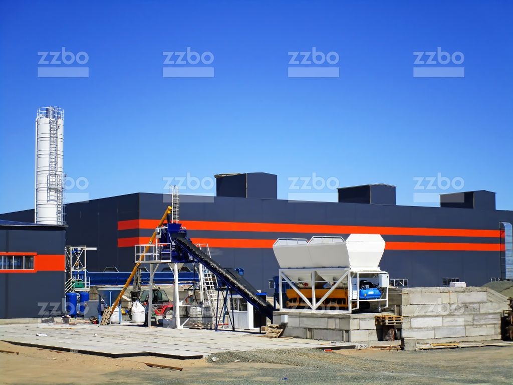 Двухвальный бетоносмеситель БП-2Г-750 установлен на эстакаде, на высоте разгрузки готовой смеси 4 метра. Бетонный завод оборудован специальным ленточным конвейером с шевронной лентой для загрузки инертных материалов в двухвальный бетоносмеситель бетоносмеситель.