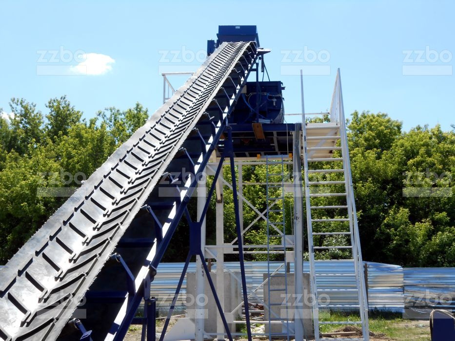 При наборе необходимой дозы инертных, включается конвейер и от дозированные компоненты подаются на ленточный конвейер. По конвейеру смесь поднимается и попадает в смесительную камеру бетоносмесителя.