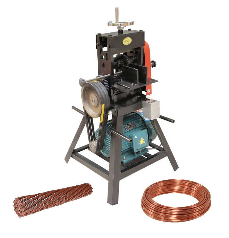 Очень мощный станок DX-120 позволяет очищать провод от изоляции концы провода диаметром от 10 до 120 мм.