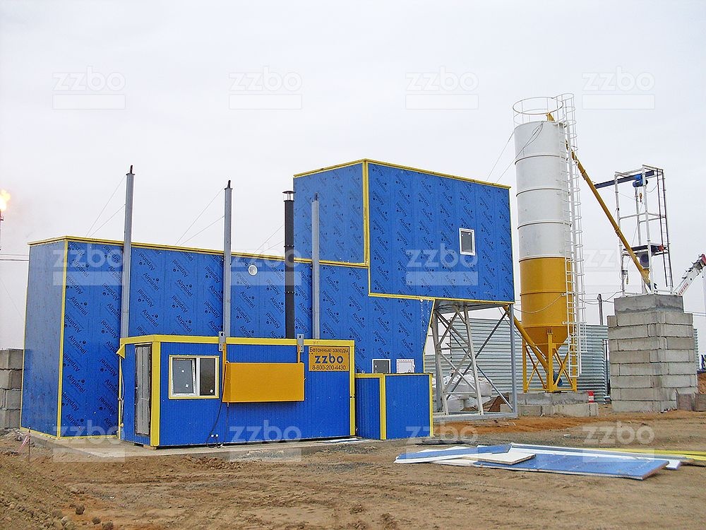Бетонный завод и утепленный корпус смонтирован на раме, которая устанавливается на ровной площадке, без использования фундамента, при этом скиповый приямок не нужен.