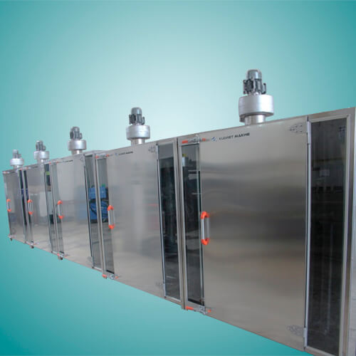 Внутренние поверхности - качество нержавеющей стали 304. Наружные поверхности окрашены, система контроля температуры PLC. Сенсорный экран.