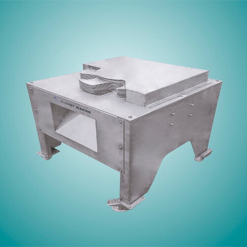 Он изготовлен из 30 * 30 нержавеющего профиля и 1 листа из нержавеющей стали. Оборудован роликами. Используется для выстраивания нарезанных продуктов в сушильный лоток.
