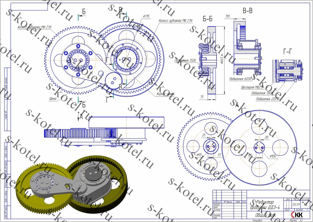 Стоит отметить, что редуктора дробилки ДДЗ-4, как самостоятельной сборочной единицы, не существует. Его детали включены в спецификации валков подвижного, неподвижного и вала приводного.