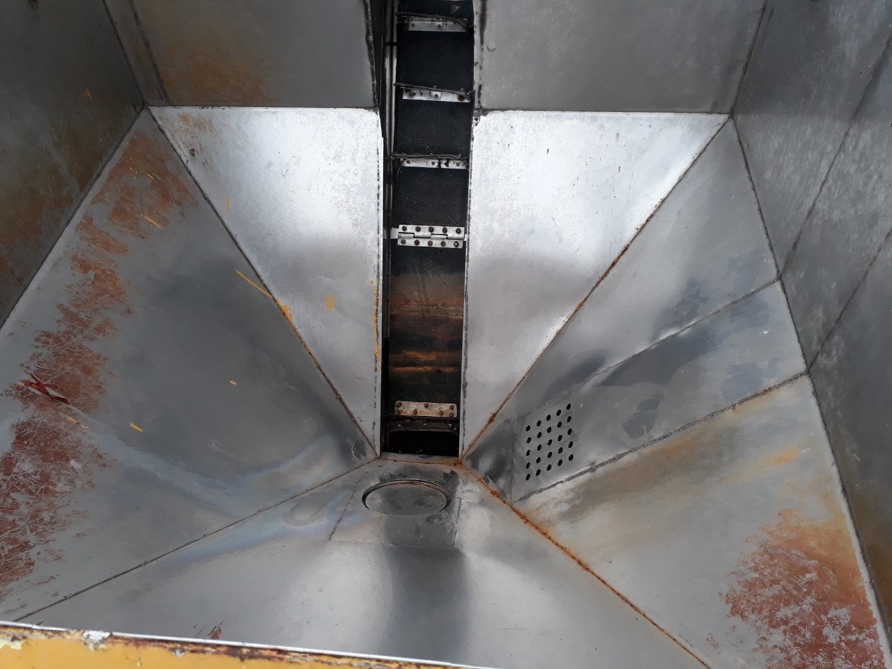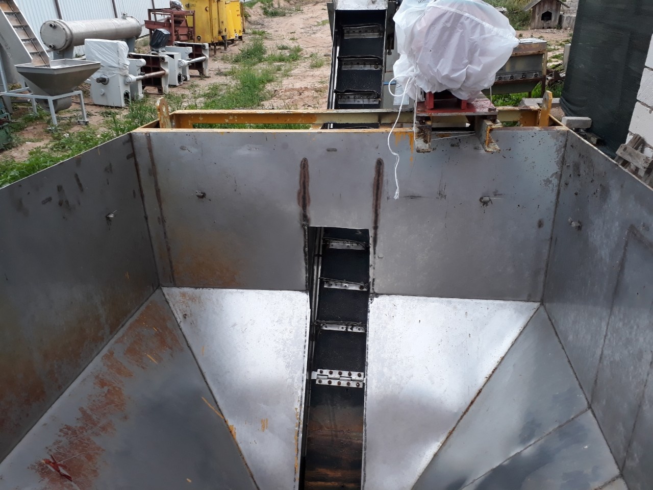 Ванна 1300 на 1300. Глубина ванны 500+700(конус).Высота выгрузки 1500. Ширина ленты 200. Мощность 0.55 кВт.