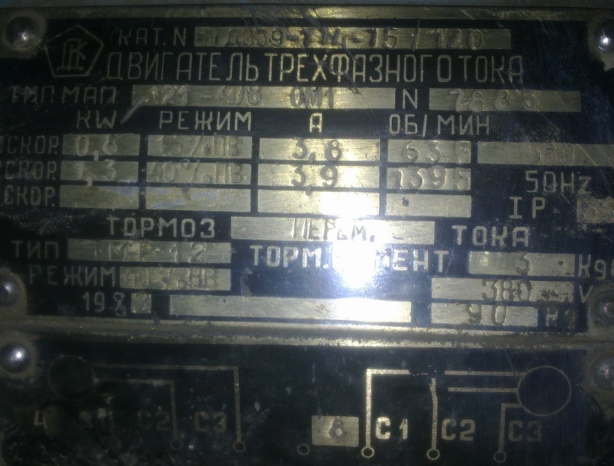 Двигатель МАП-122-4/12 ом с ТМТ-12(4,8кВт;18,2/10,5А; 220/380В 1415 об/м. - 1 шт.