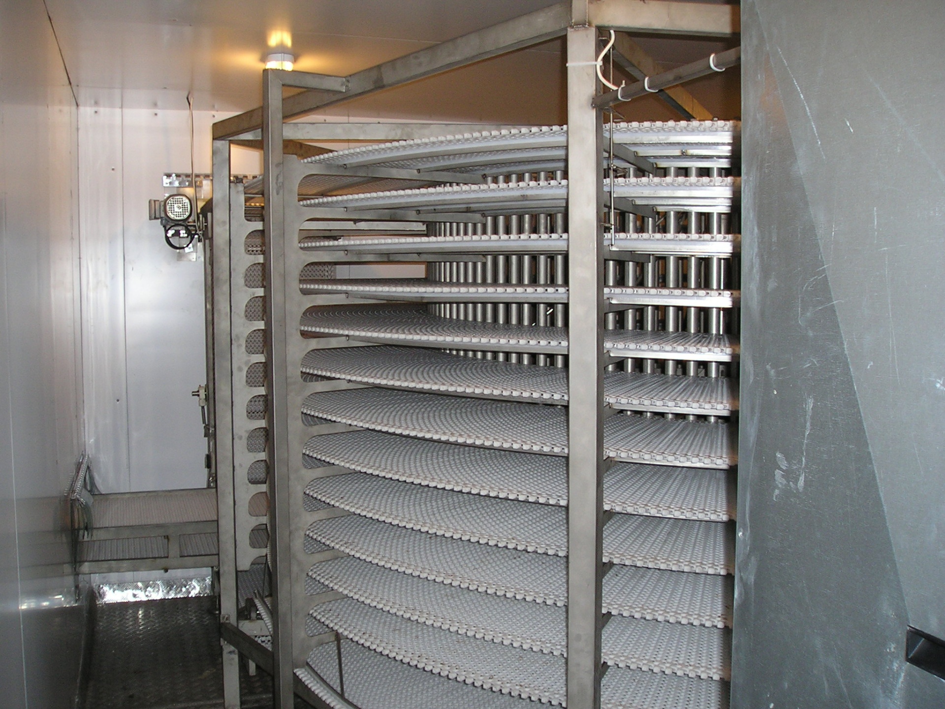 Скороморозильный спиральный конвейер тип СК700 (производительность:700 кг/час - пельмени, 500кг в час -котлеты, конвейер можно использовать для замораживания продукции-лента новая, длина ленты 200 м, но конструкция СК - позволяет увеличить до 300м