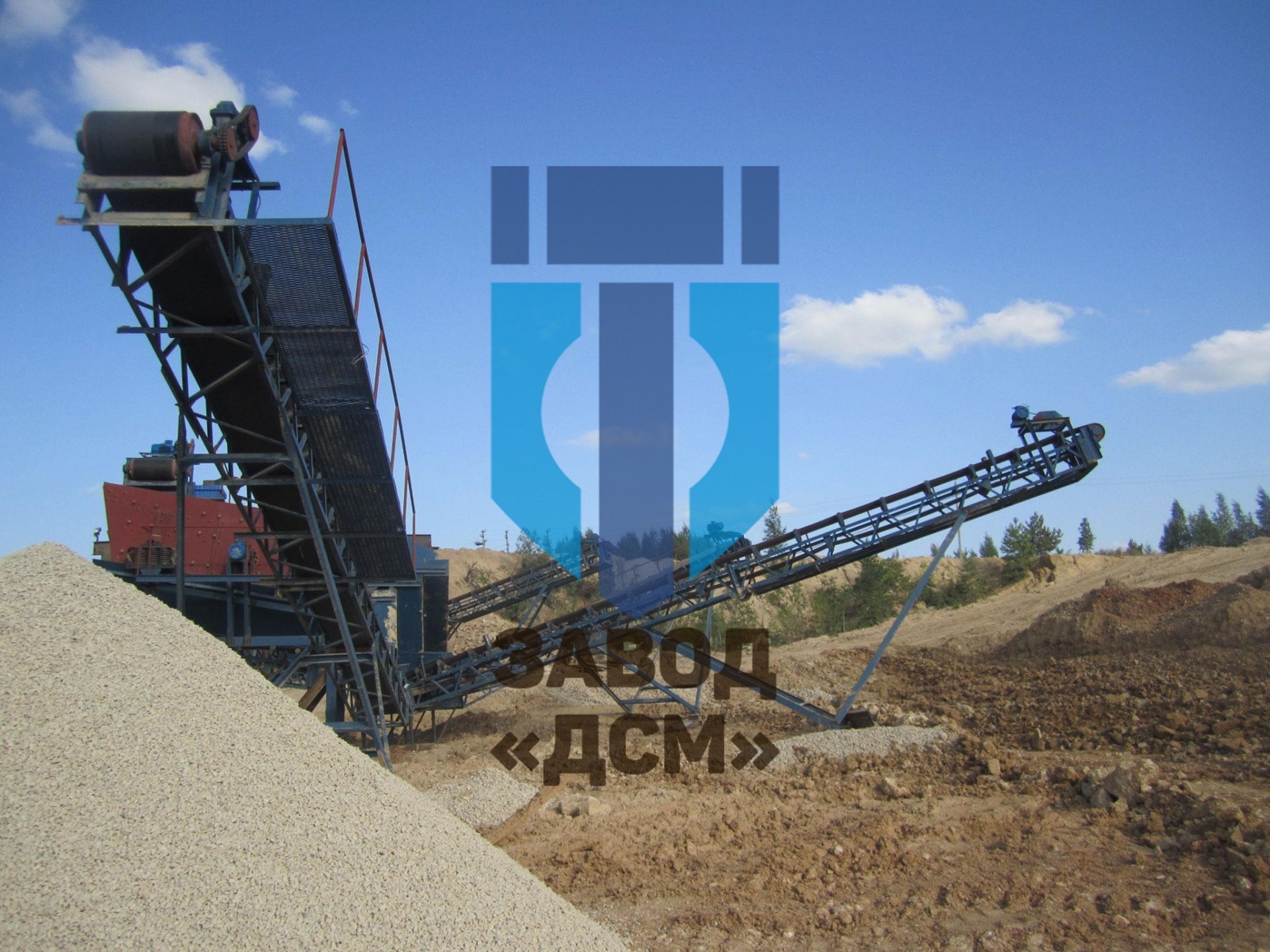 Для обеспечения транспортировки материала от агрегатов различных стадий переработки к другим Завод «ДСМ-Групп» выпускает конвейеры 4-х типоразмеров с шириной ленты 500, 650, 800 и 1000 мм. Конвейеры рассчитаны на транспортировку материалов с насыпным весом до 2 т/м3 (для каменных материалов). Создание технологических линий требует использования конвейеров различной длины, поэтому Завод «ДСМ» предлагает потребителям серийный модельный ряд конвейеров длиной от 5 до 35 метров, однако возможна поставка конвейеров других длин вплоть до 200 м. Стандартный угол подъема конвейеров — 180.