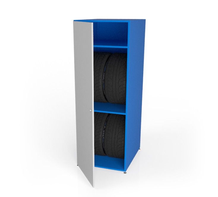 Для производства шкафов для шин серии ШМ используется стальной профиль, который обшивается листами из металла. Приятный внешний вид, а также защиту изделиям от коррозии и внешнего воздействия обеспечивает порошковая покраска. Конструкция шкафов позволяет удобно расположить шины и колеса на полках, а также разместить другие вещи если это необходимо.