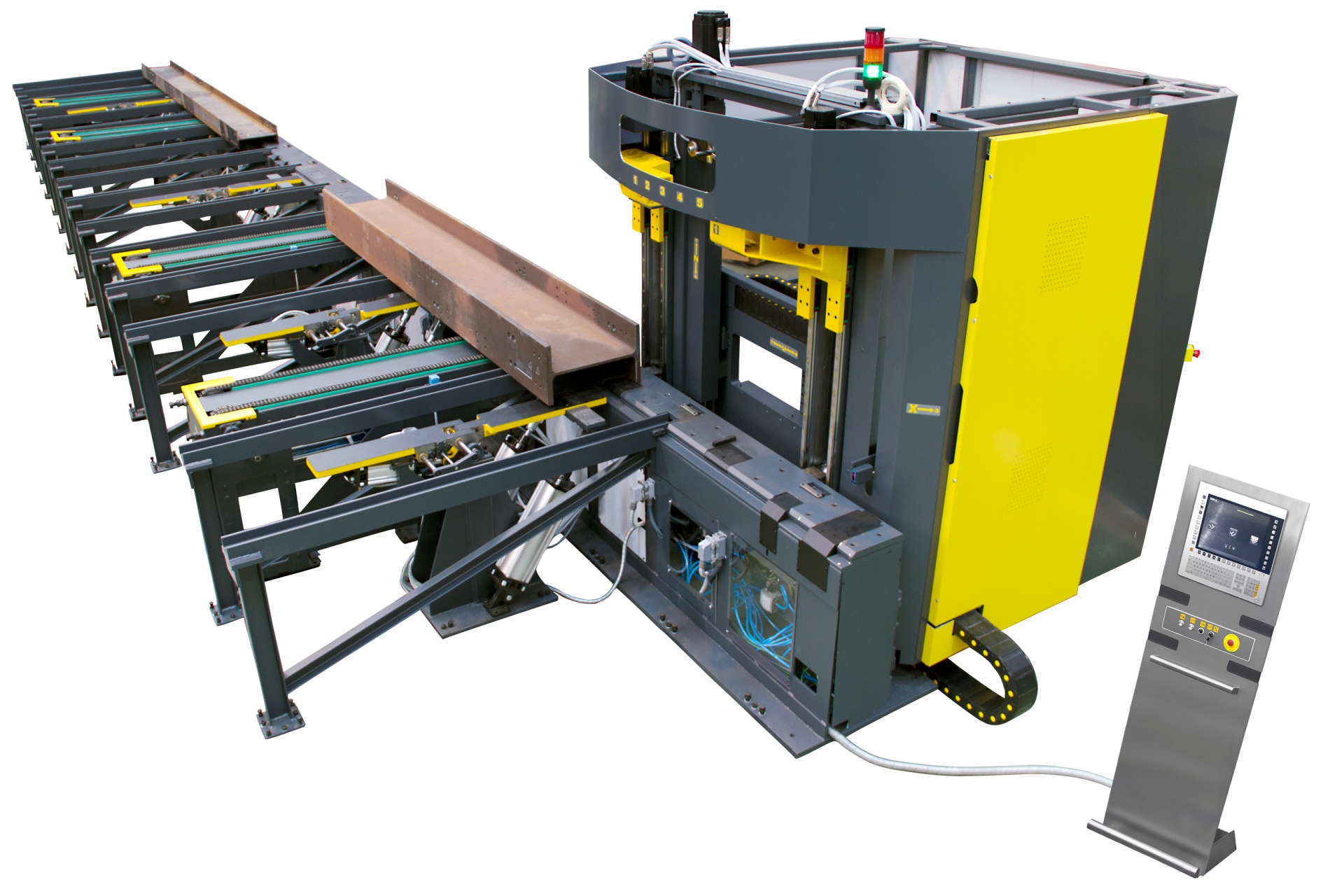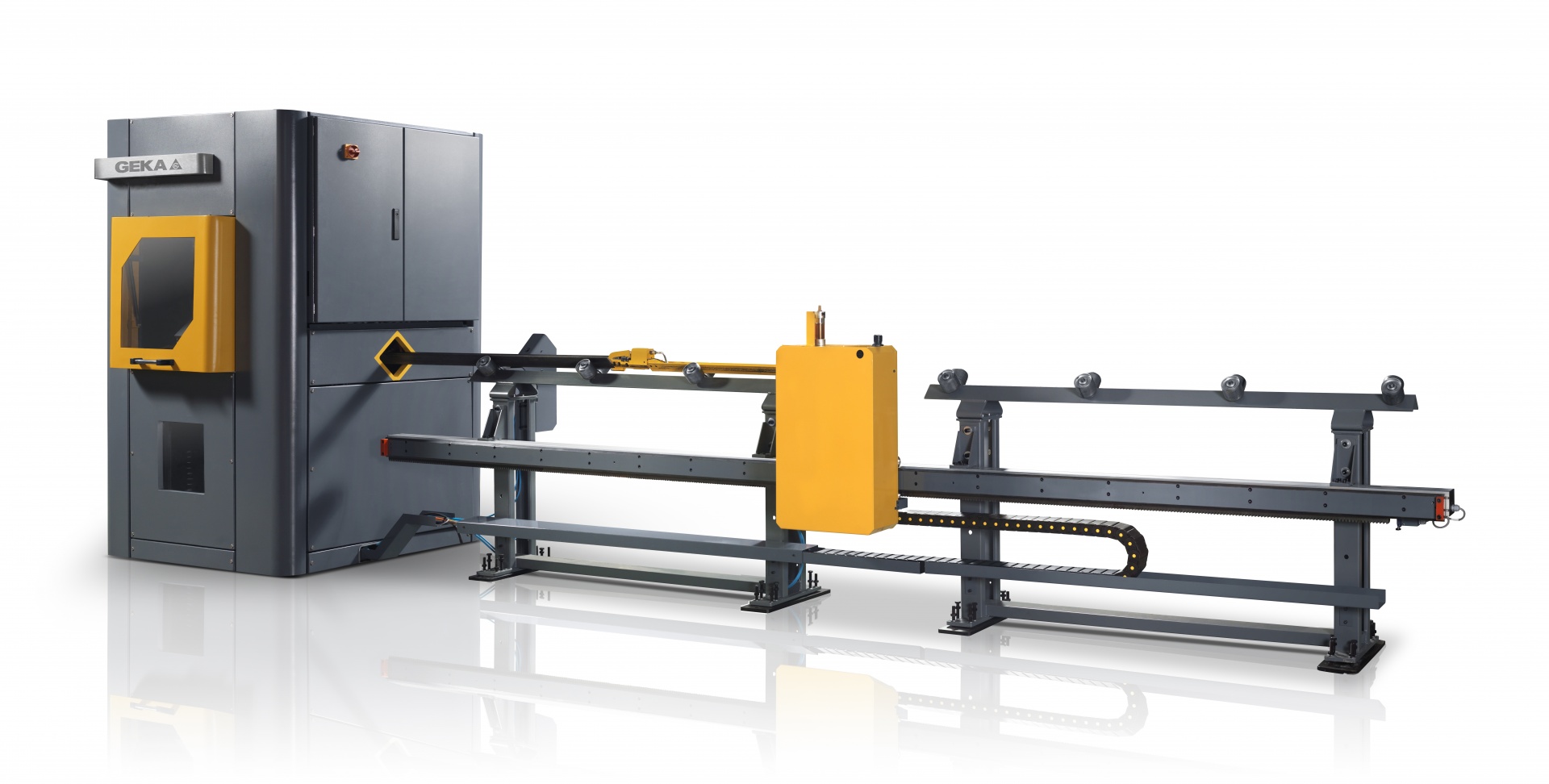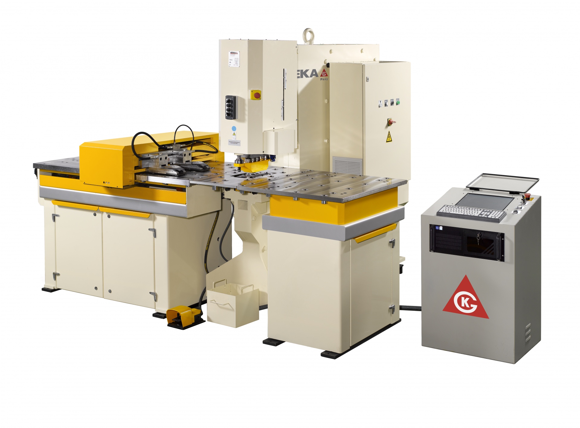 GEKA SEMI PAXY - универсальное решение с ЧПУ, для пробивки отверстий в полосе, уголке, швеллере (полка/стенка) на базе пробивного пресса или пресс-ножниц с зевом свыше 500 мм. Наиболее гибкое решение для заводов металлоконструкций. Имеет ряд преимуществ с более автоматизированными установками.