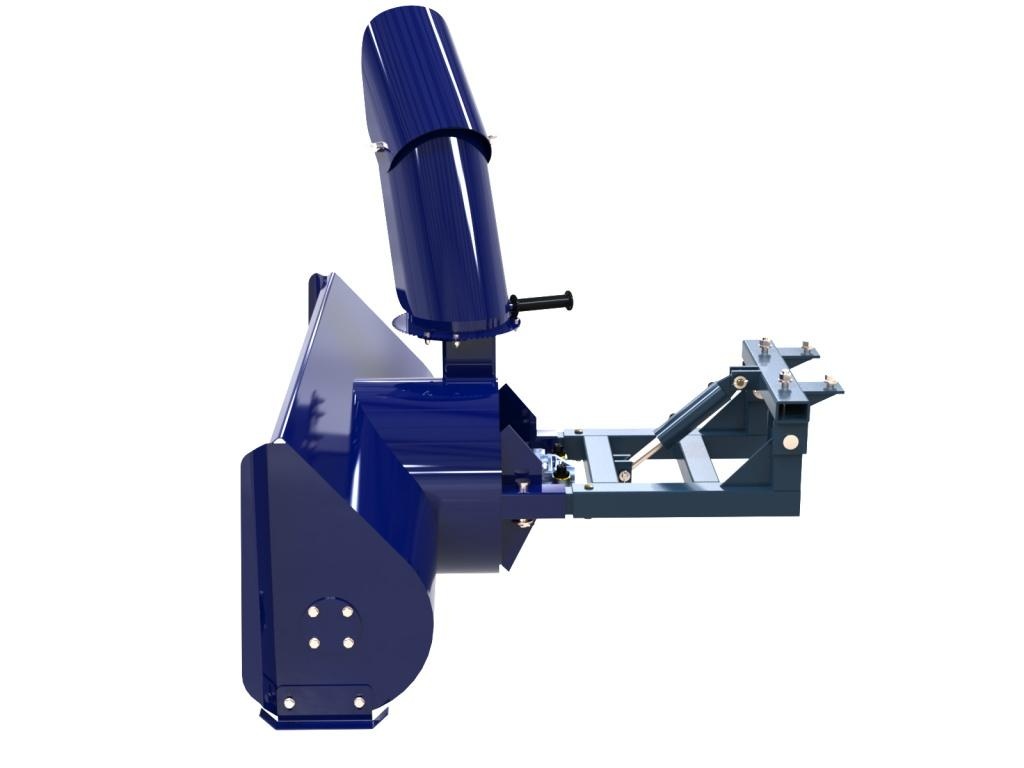 - Поворотный желоб отбрасывателя направляет снег вправо от трактора