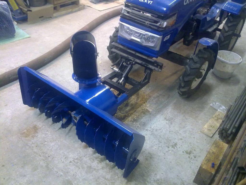 Когда трактор движется, снег попадает в зону работы фрезы-ротора, крошится и винтовыми лопастями фрезы сгоняется к выбросным лопаткам. Снег захватывается лопатками и центробежной силой направляется вверх по горловине к желобу, где меняет свое направление и выбрасывается в нужное место.