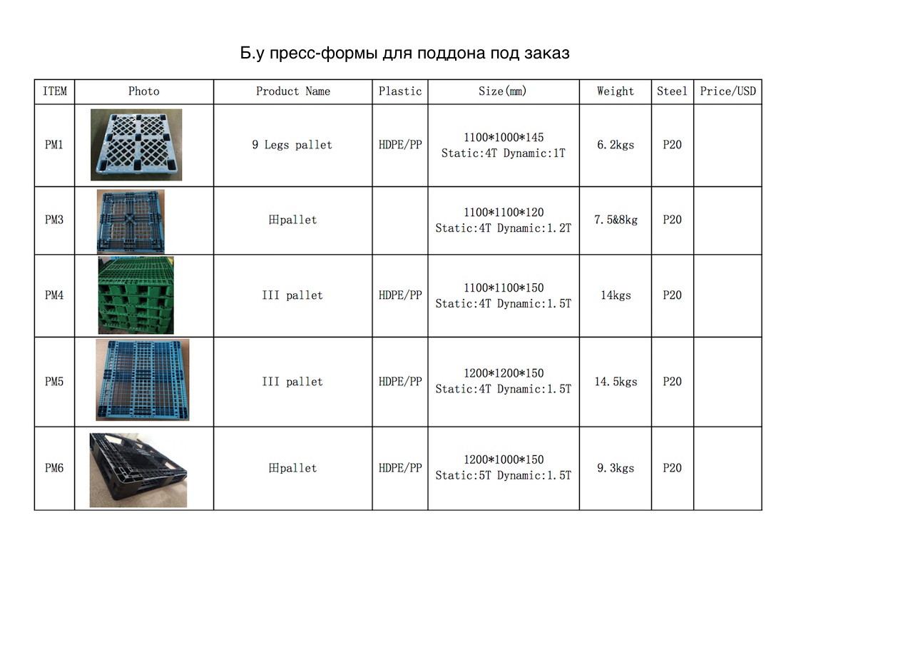 2. Также в таблице список б.у пресс-форм под заказ на другие размеры поддона. После открытия заказа пресс-формы проходят восстановительный ремонт.