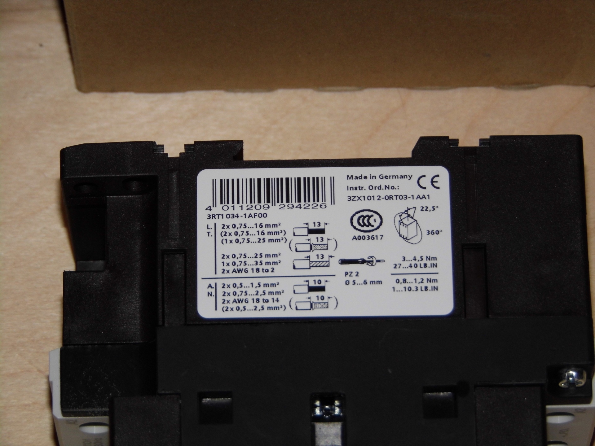 Новый контактор Siemens Sirius 3RT1034-1AF00