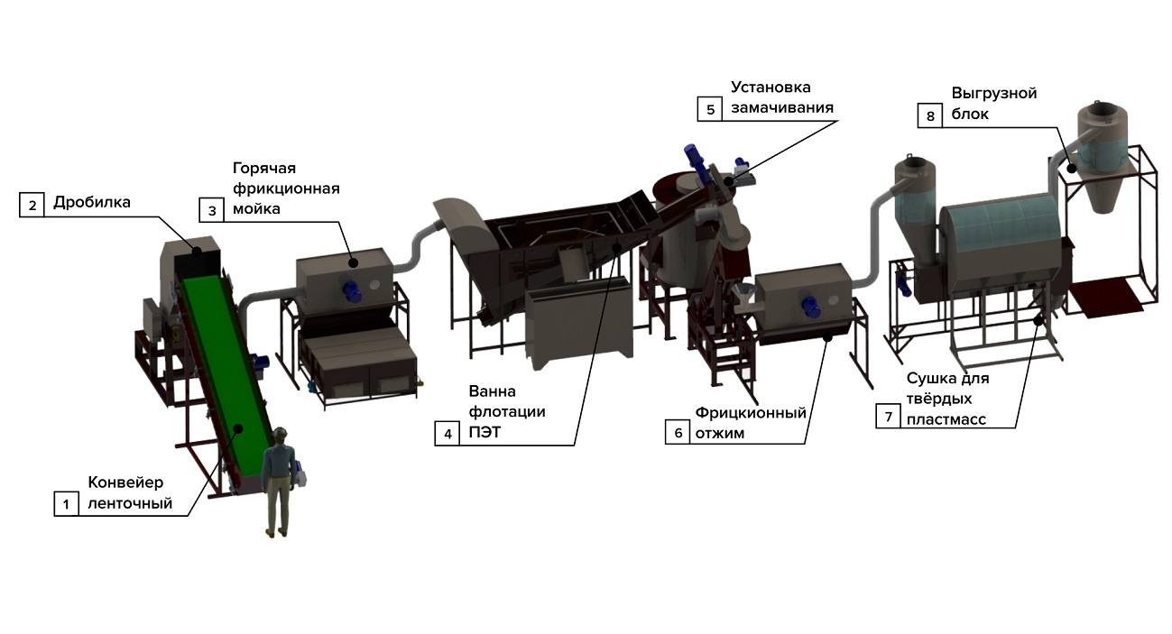 Линия переработки ПЭТ отходов (400кг/ч) - Продам в Домодедово