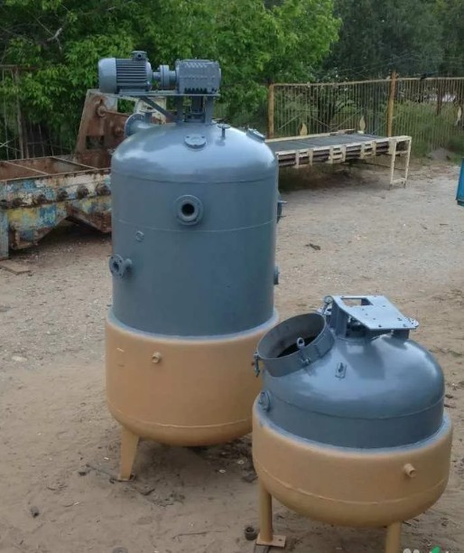 Продукт перемешивается мешалкой с вертикальным валом с лопастями, нагревается в паровой камере с предохранительным клапаном и манометром. В нижней части днища аппарата – патрубок для отвода конденсата.