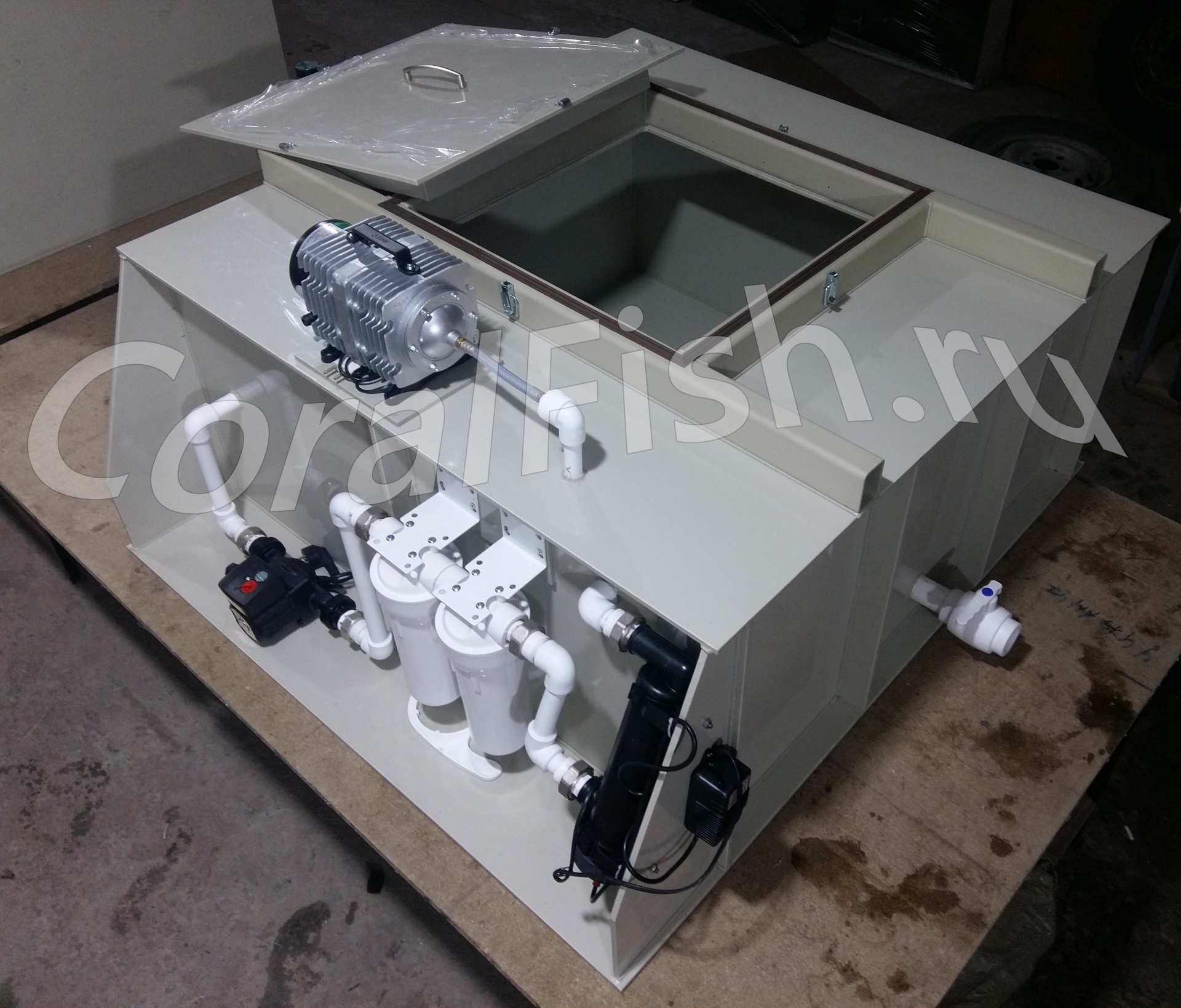 Дополнительное оборудование: Помпа погружного типа для пополнения емкости водой из внешнего водоема во время остановки.
