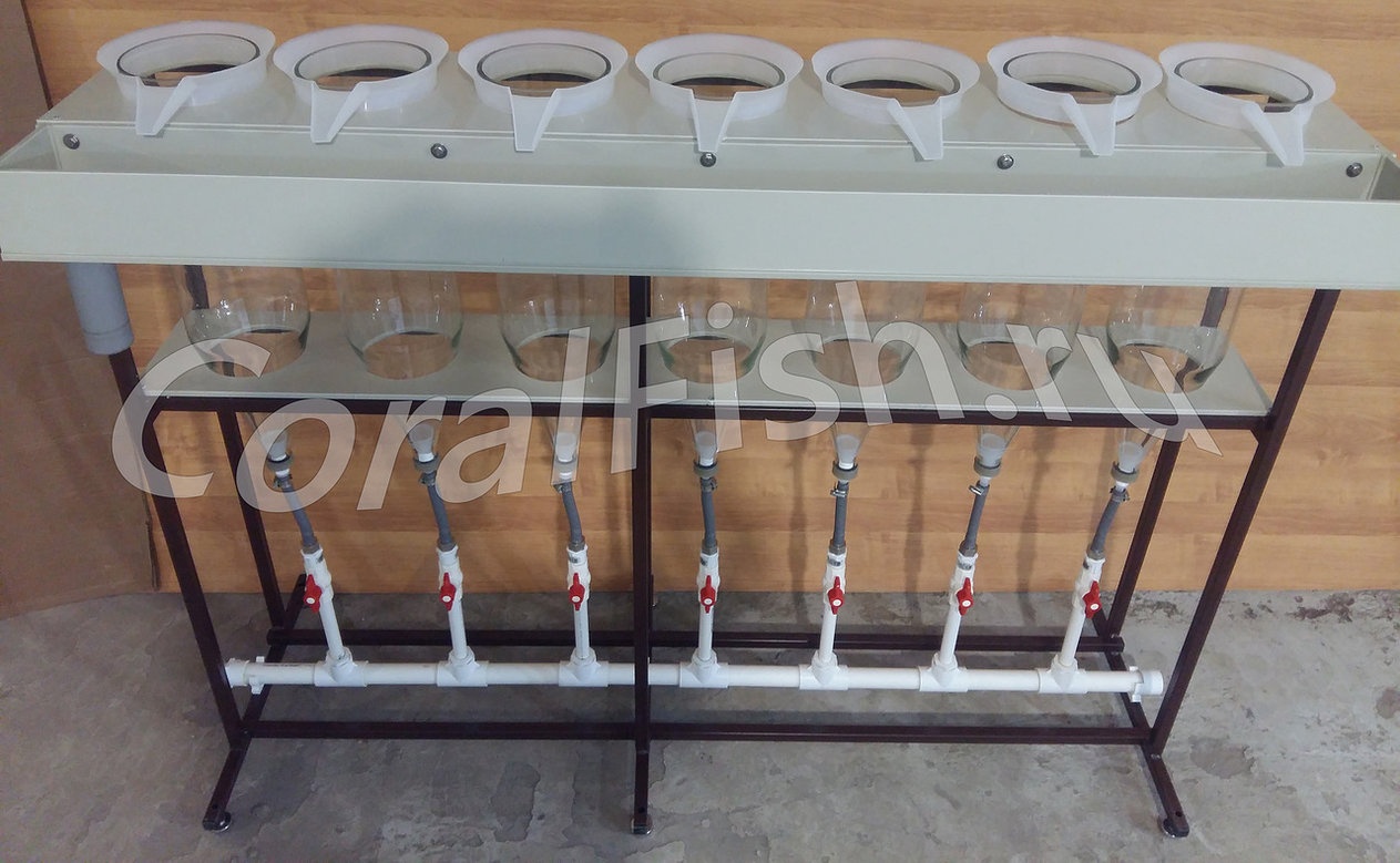 Стойка состоит из следующих основных узлов: аппаратов Вейса (колб), сварных металлических секций (рам), водоподводящих и личинкоприемных лотков, личинкоприемников. Стойка с аппаратами работает в двух режимах: при инкубации икры и при выклеве личинок. При выклеве личинок вода подается раздельно в аппараты.