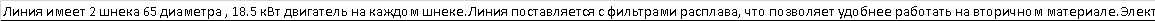 | Линия имеет 2 шнека 65 диаметра , 18.5 кВт двигатель на каждом шнеке. Линия поставляется с фильтрами расплава, что позволяет удобнее работать на вторичном материале. Электростатический забор кромки. И узел подачи жидкого клея. Утилизатор кромки включен в стоимость. Так же в стоимость уже включен НДС. Данная линия находиться в пути, независимо от того есть за неё предоплата или нет. Для того чтобы получить подробные технические характеристики запрашивайте предложение в лс или по телефону |