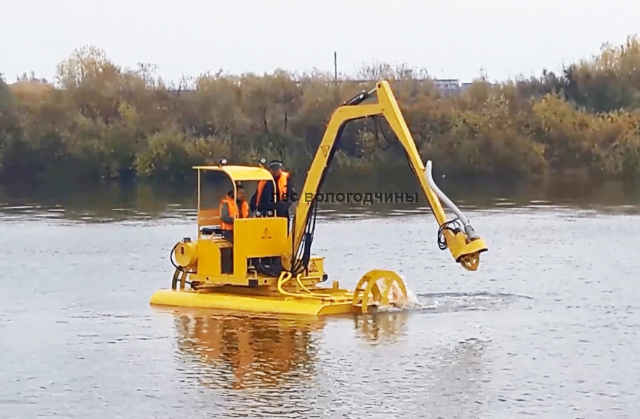 Рабочий инструмент - поворотная стрела с (блоком для плотного грунта с насосом, грейферный захват, грейферные вилы, мульчер для удаления водорослей);