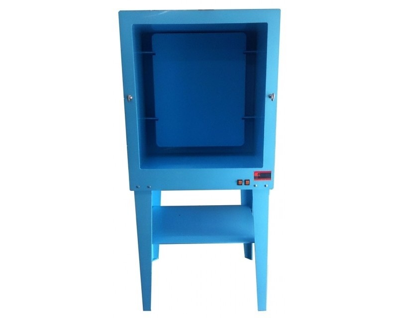 Камера покрасочная (бокс для напыления) предназначена для нанесения декоративного покрытия. Камера изготовлена из листового полипропилена тощиной 8 мм и оборудована системой принудительного удаления взвесей (со встроенным фильтром) и испарений наносимого (распыляемого) материала на обрабатываемую поверхность изделия. Для более комфортной эксплуатации покрасочной камеры внутри установлена система освещения (светодиодная лента), на ножках камеры установлена дополнительная полка для товара (усиленная рёбрами жёсткости). На фронтальной стенке камеры установлены два крючка для подвешивания инструмента и приспособлений используемых при работе.