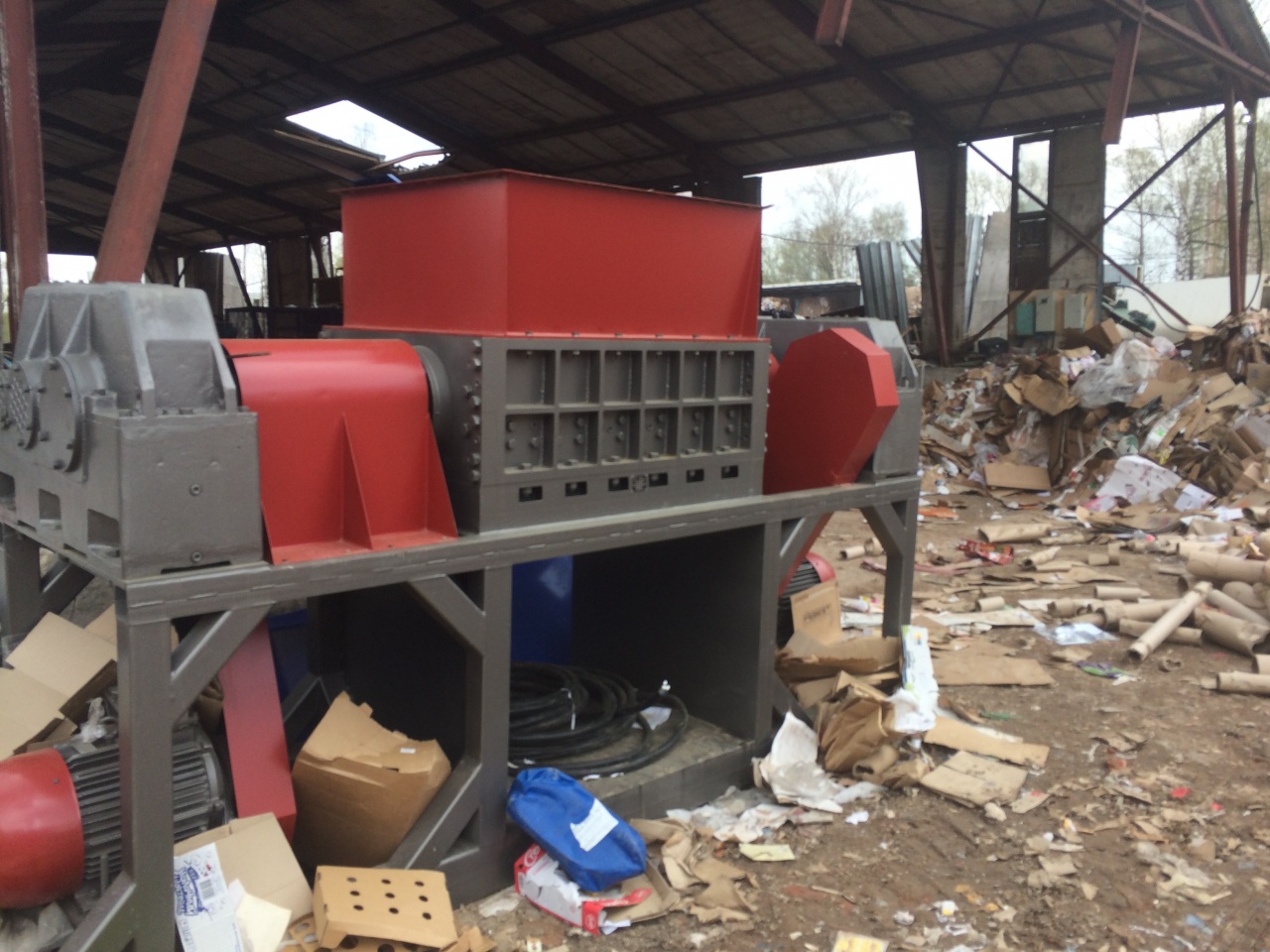 Большой промышленный шредер для любых типов отходов, от биг бэгов до толстых труб, до 5 т/час