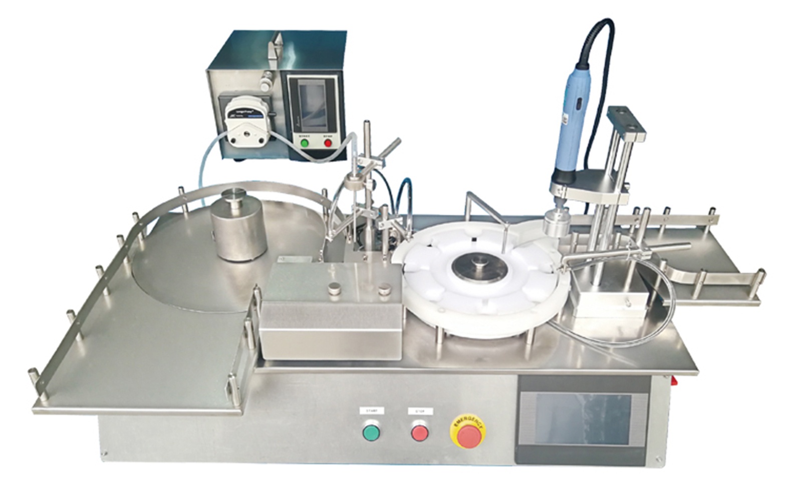 Автомат– предназначен для розлива фармацевтических препаратов, косметических средств, лака для сушки для ногтей и др. подобных жидкостей с функцией автоматического наполнения, подачей кисточки и крышки, вставки в бутылочку и закручивания.