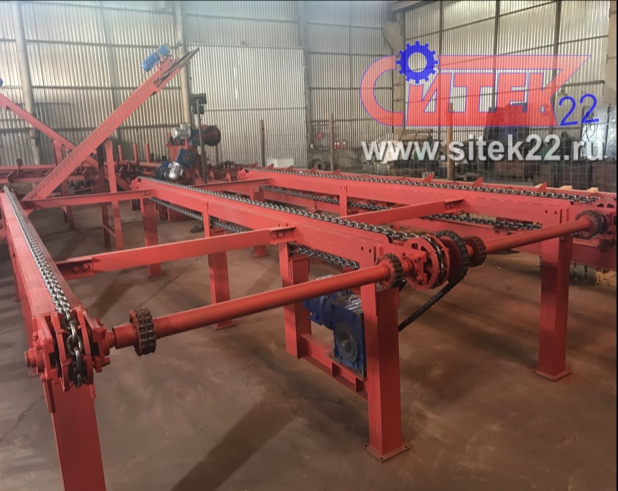 Предназначен для приёма, буферного накопления и поштучной выдачи брёвен к подающему устройству лесопильного оборудования. Состоит из цепного поперечного транспортёра, аппарели и цепного наклонного транспортёра с зацепами.