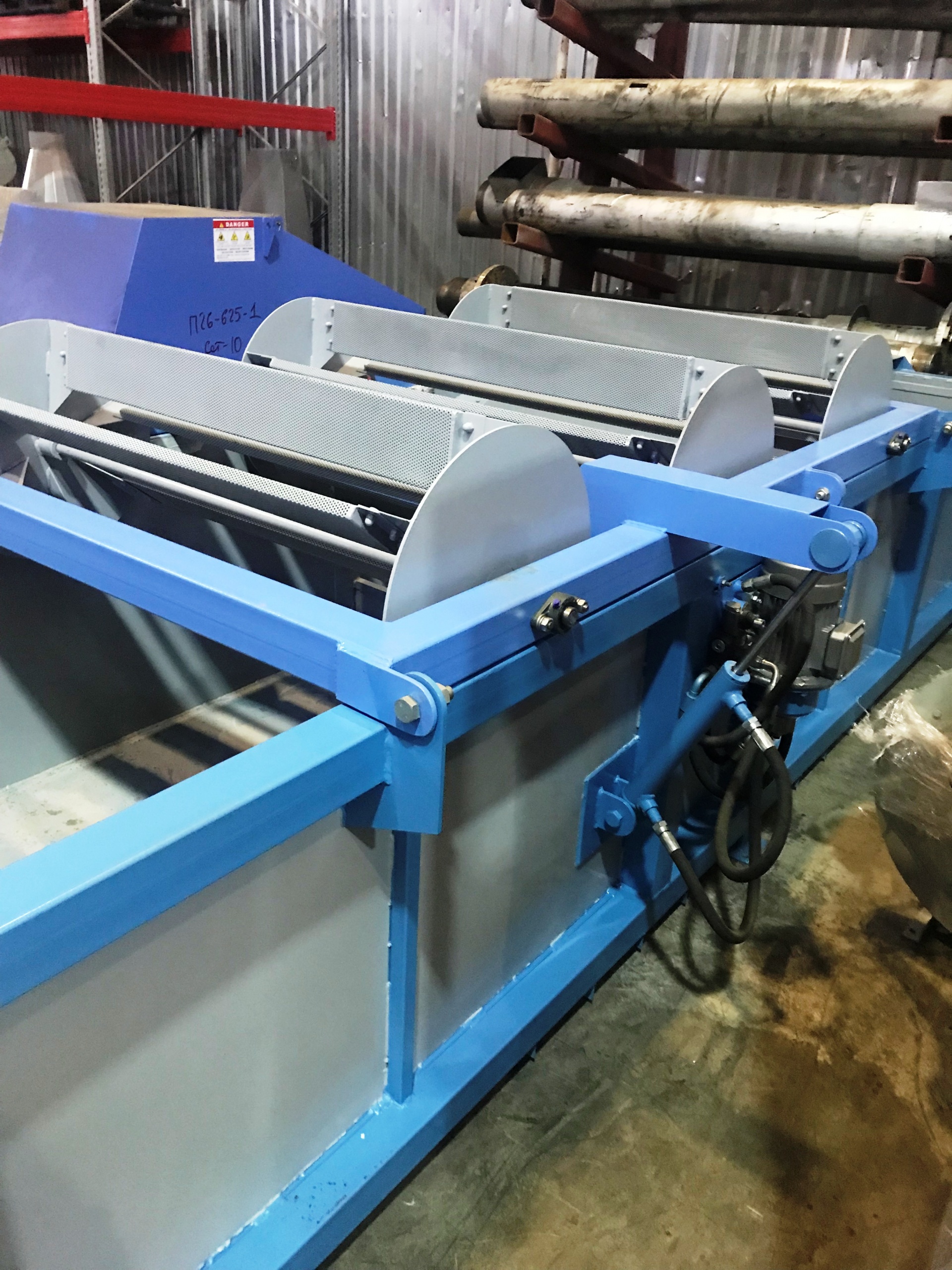Ванна флотации, ширина 1400 мм., длина 4000 мм, высота 90 мм., 3 гребенки с двигателем 0,18 кВт. Маслостанция 0,55 кВт.