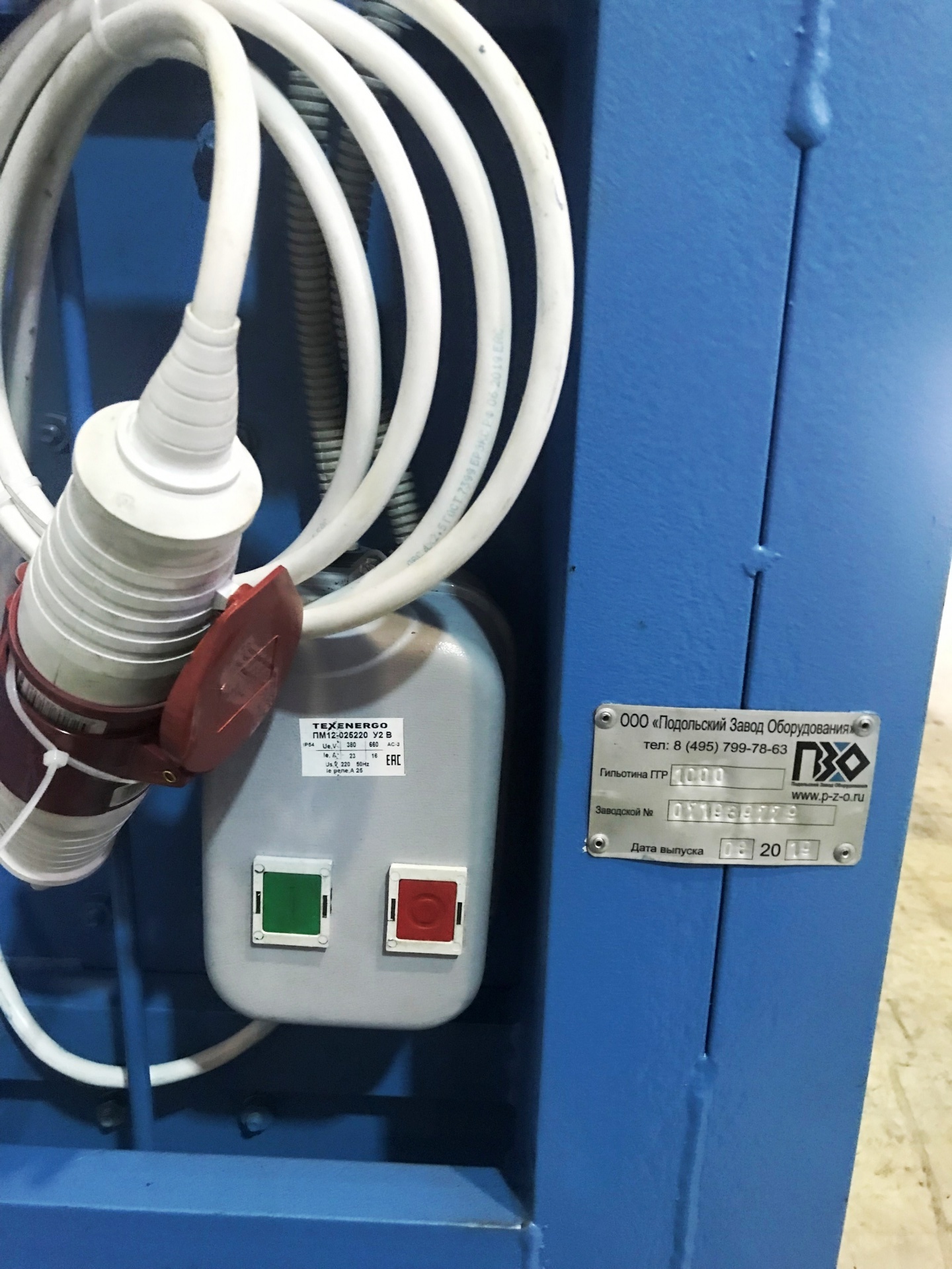 Цикл гильотирования 35 сек, мощность двигателя 7,5 кВт, нож 1000 мм, усилие разрезания 40 тонн