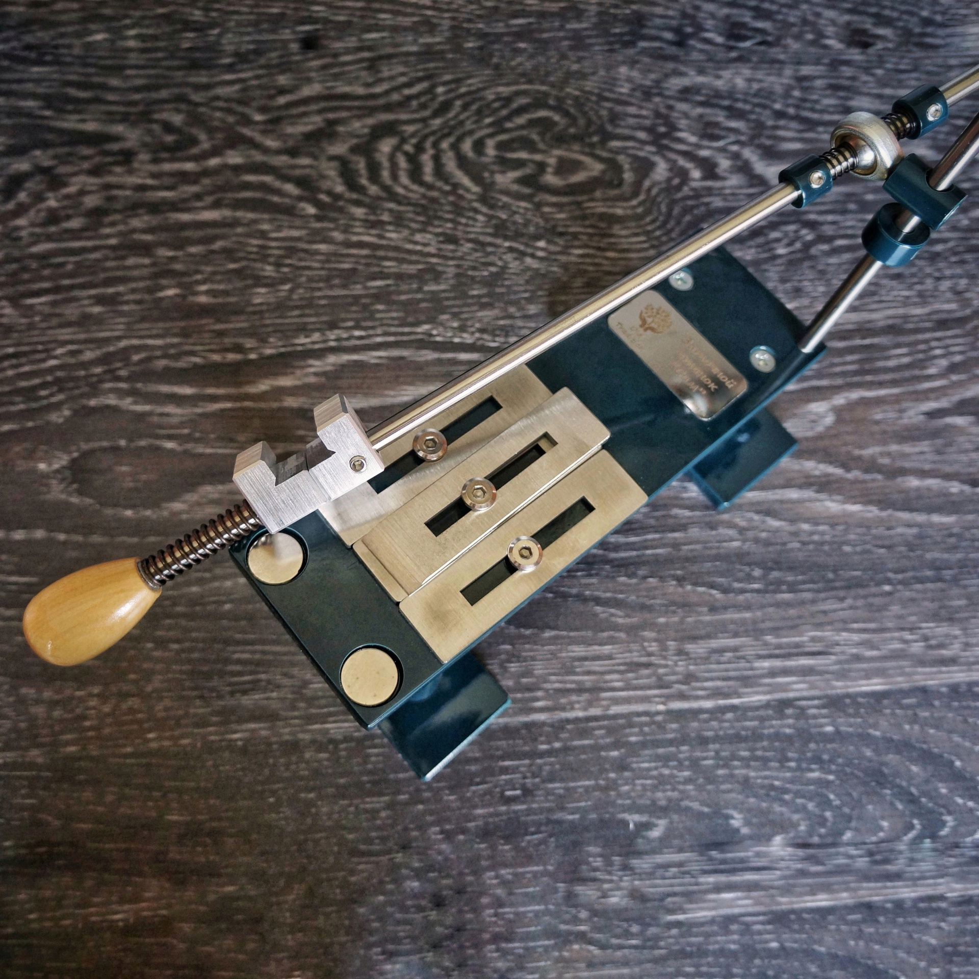 Приспособление соблюдает заданный точный угол между абразивом и режущей кромкой затачиваемого предмета с точностью до 0,1°