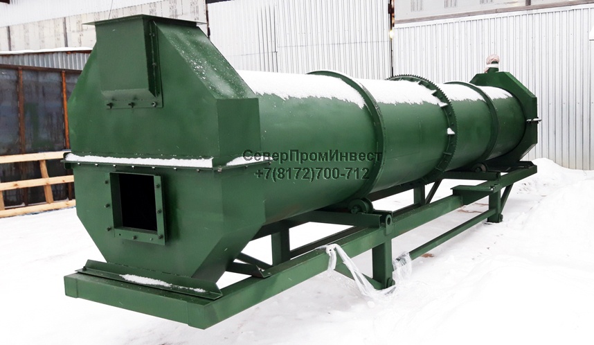Сушильный барабан используется в составе технологических линий в комплекте с источником тепла и устройствами загрузки выгрузки сырья.