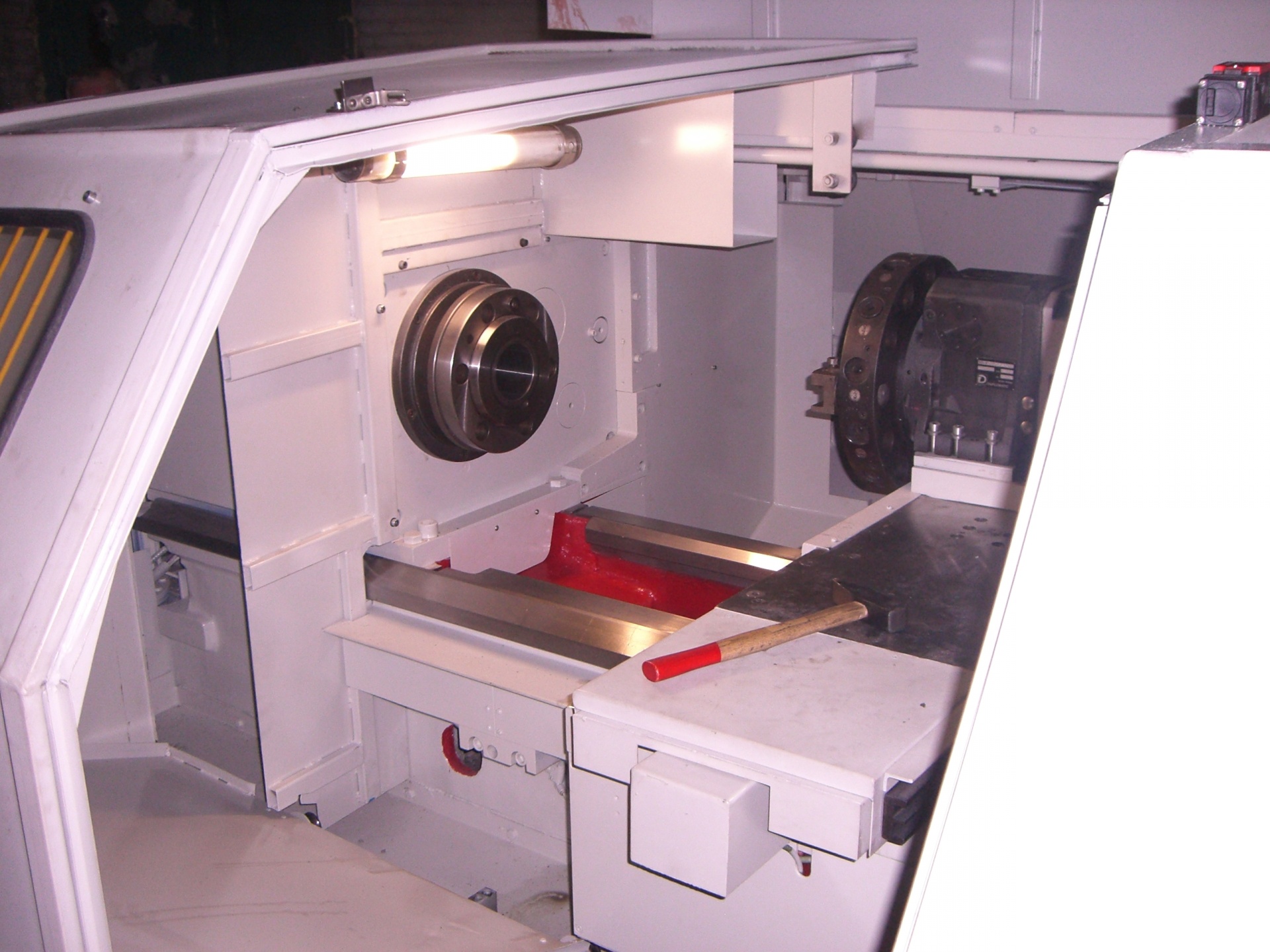 Гидрофицированное управление пинолью задней бабки, механизированный зажим и разжим патрона, наличие транспортера стружки до минимума упрощают работу оператора.