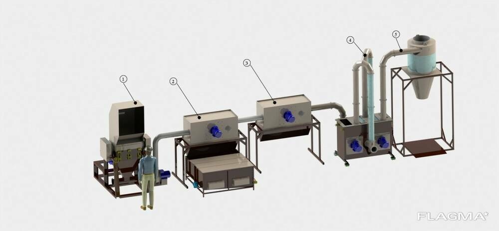Продаётся линия по переработке плавающих твёрдых тонкостенных полимеров (канистры, ящики, вёдра и т. д.) Производительность до 200 кг/ч. Установленное энергопотребление 123,8 кВт/ч (реальное 99). Количество воды в линии 1 м^3. Частота замены воды зависит от степени загрязнения. Обслуживать линию может 1 человек. Гарантия 12 месяцев. План размещения может быть изменен по заданию заказчика.