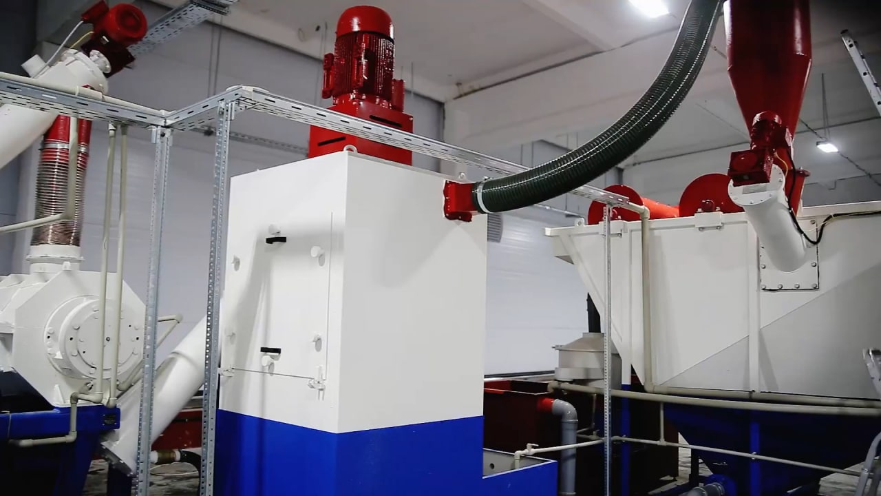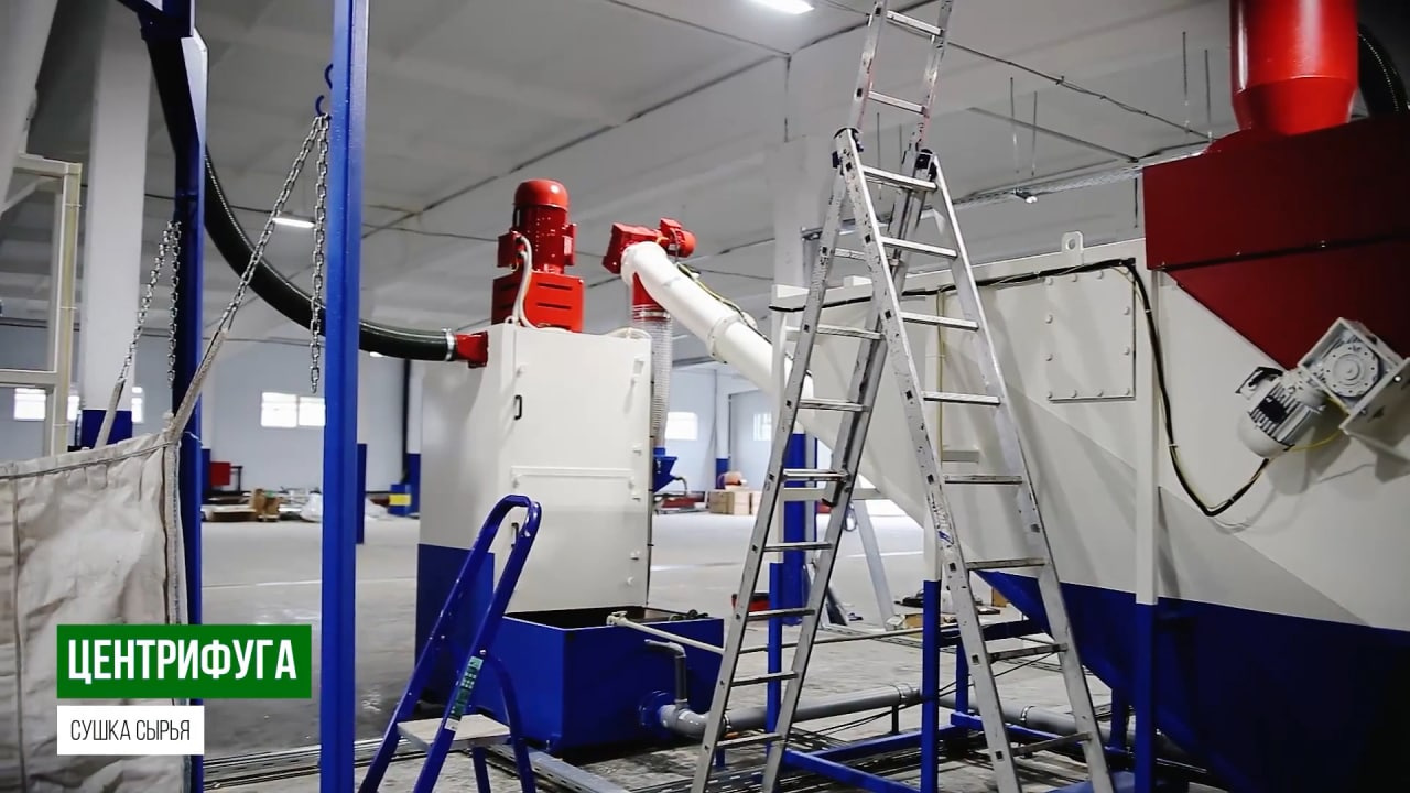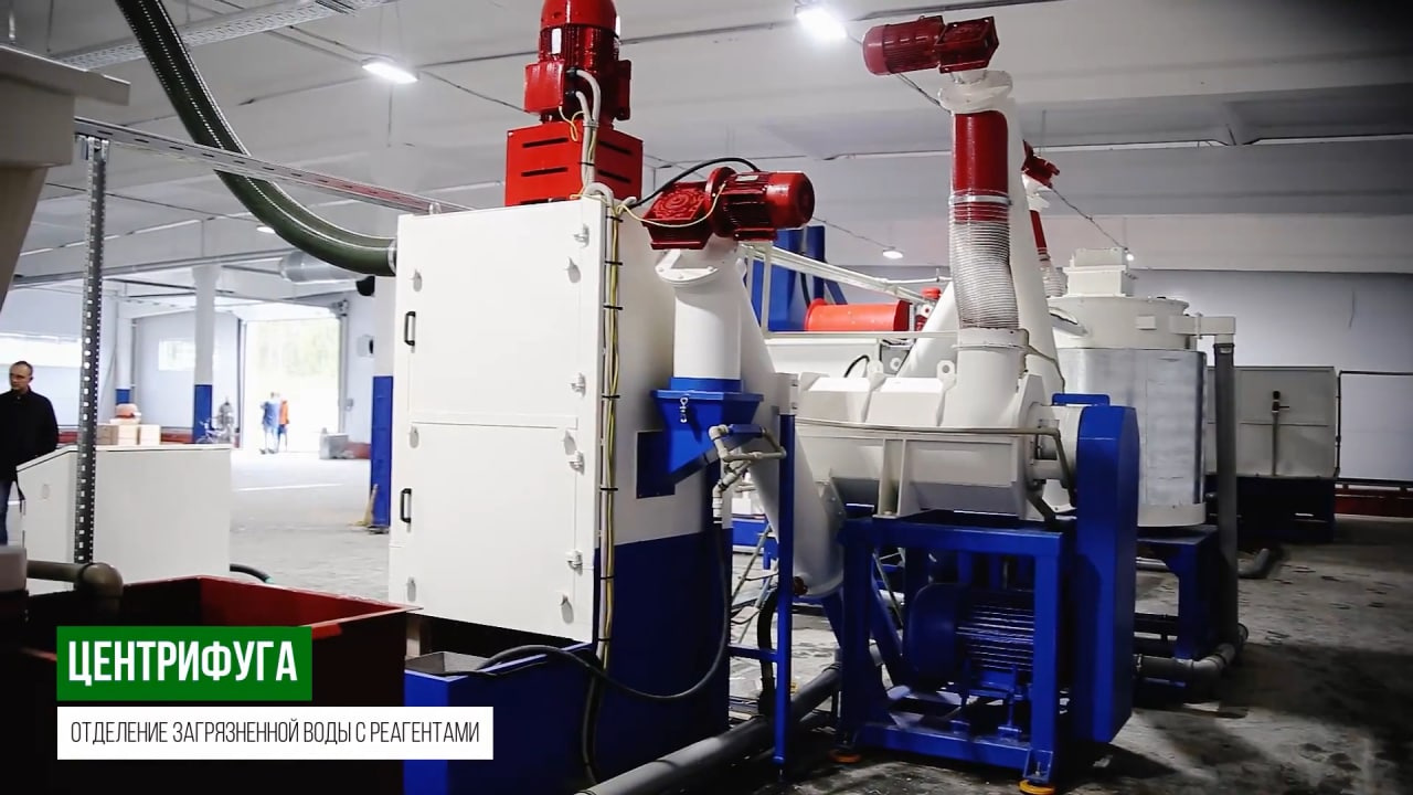 Центрифуга механически удаляет загрязняющие примеси из полимерных хлопьев при помощи высокоскоростного ротора с специальными лопатками. Центрифуга обеспечивает высокую степень осушения, отличается высокой надежностью, простотой обслуживания и эксплуатации.