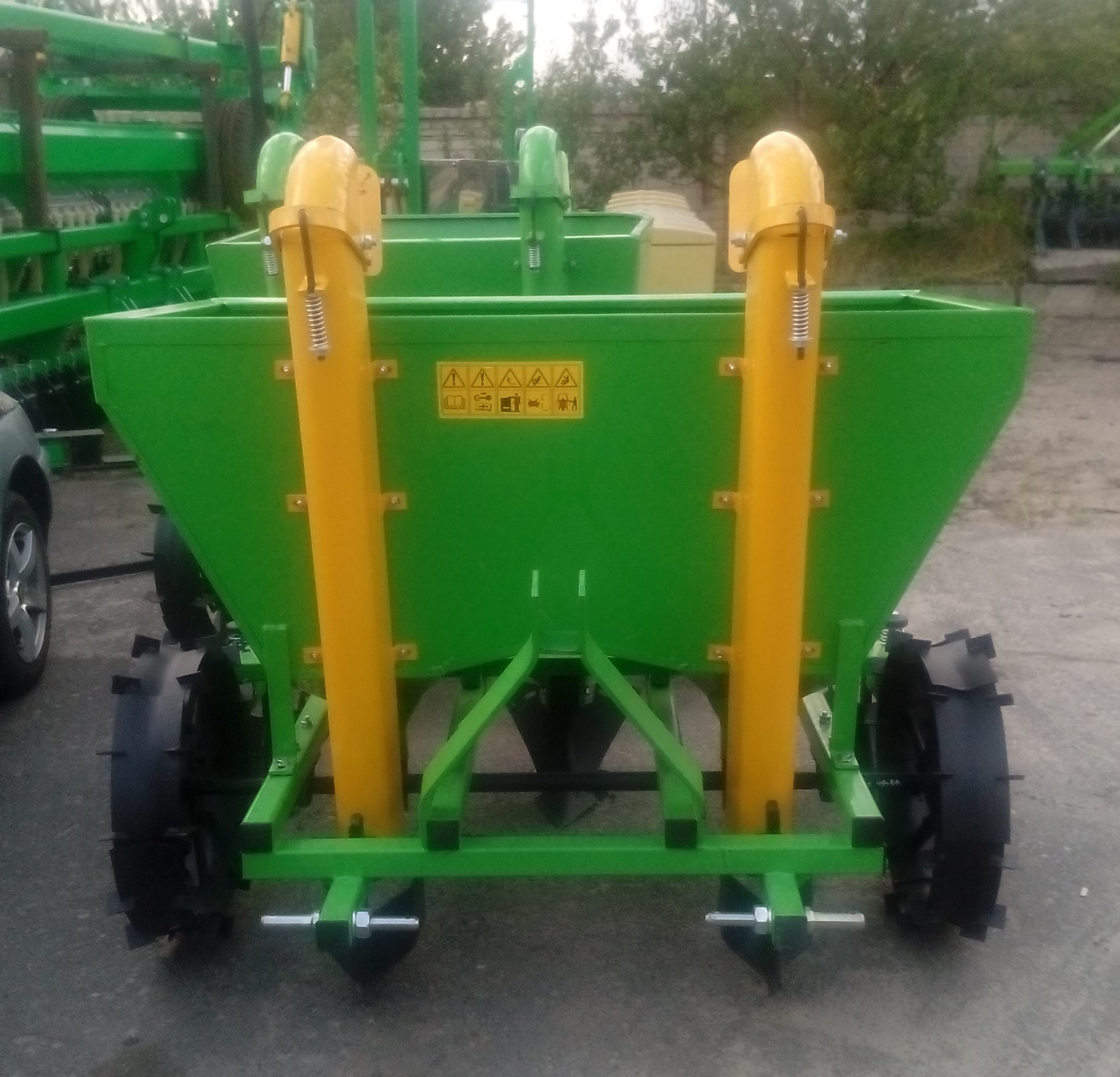 Навесной сажатель картофеля это лучший вариант для посадки картофеля как в небольших приусадебных участках так и в больших фермерских хозяйствах. Преимущество такого сажателя в простоте и надёжности агрегата. Сажатель за один цикл осуществляет подготовку двух борозд, высадку картофеля (с настраиваемой частотой высева) и закрытием борозды установленными на нём сошниками.