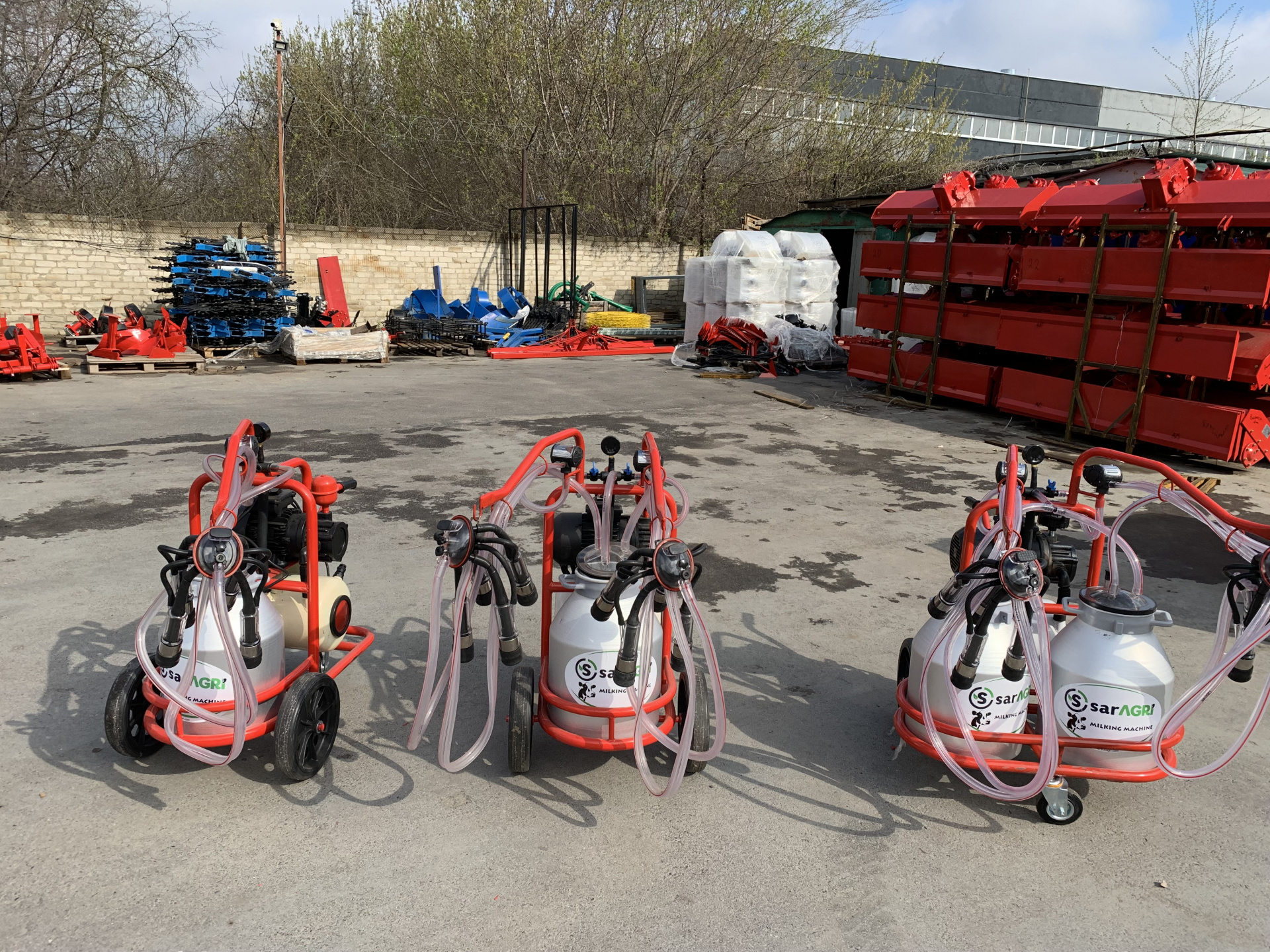 Доильные Аппараты производятся следующих видов: 1 бидон 1 пульсатор, 1 бидон 2 пульсатора, 2 бидона 2 пульсатора. Бидоны производятся из алюминия. Прост в использовании, надежный, компактный и мобильный доильный аппарат с объемом 30 литров. Незаменим для малых фермерских хозяйств, где нет необходимости устанавливать стационарный доильный зал.