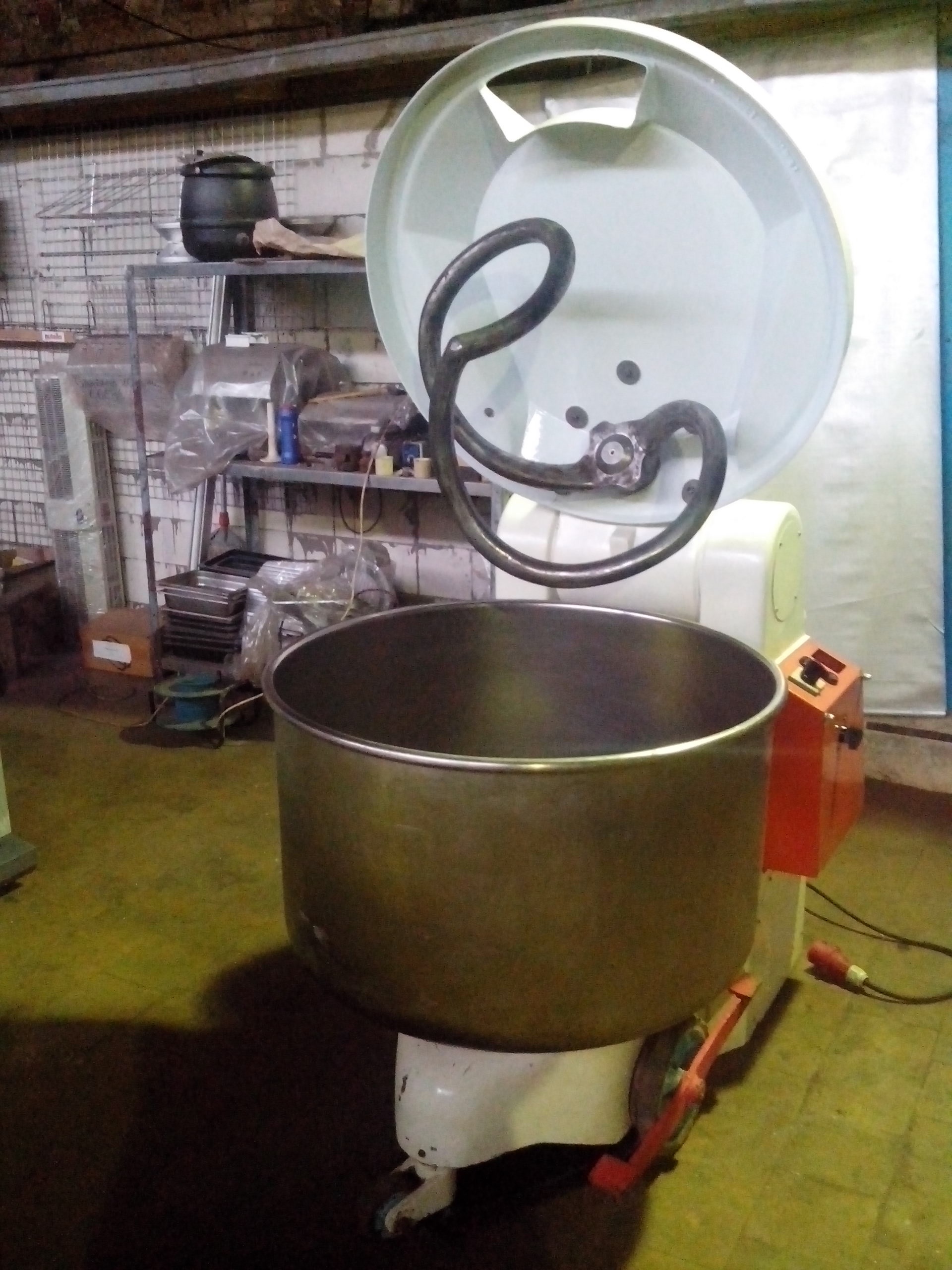 Универсальная тестомесильная машина "Gostoll" DK-100, пр-во Словения. Предназначена для щадящего замеса теста, не рвет клейковину. Дежа объемом 290 литров, подкатная, из нержавеющей стали. Дежа с редкутором, имеет вращение. Загрузка сухого сырья до 100 кг. Автоматический подъем и опускание месильного органа. Запатентованный месильный орган, который есть только у тестомесов этой фирмы. Не нарушает структуру теста, не рвет клейковину. Бережно замешивает любое тесто, как ржаное, пшеничное дрожжевое, так и тяжелое. Потребляемая мощность 7.5 кВт. Сеть 380 В. Временной таймер. После капитального технического обслуживания. Габариты: 1335 мм.* 915 мм.* 1310 мм. Высота машины с поднятым месильным органом 1910 мм. Масса машины: 715 кг.